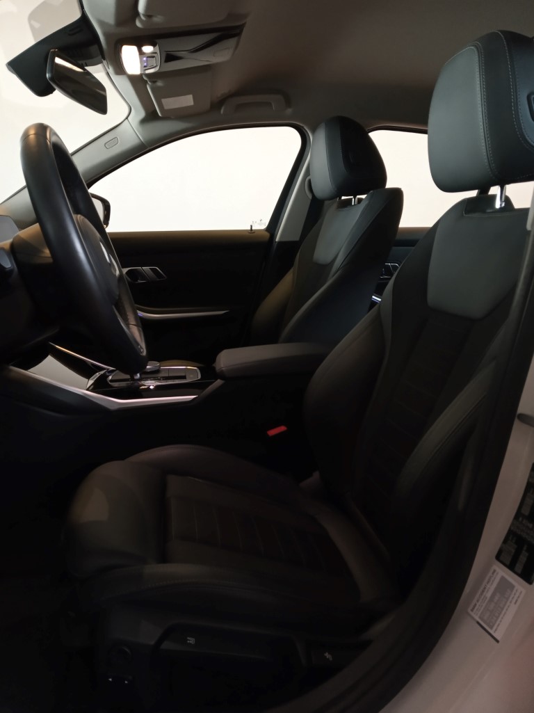 BMW 320i coche equipado con faros led, sensor de luces y lluvia, navegación, sensor de aparcamiento delantero y trasero, cámara de marcha atrás, asientos deportivos para conductor y acompañante, calefacción de los asientos delanteros, faros antiniebla de Led, parking Assistant, acabado Sport, Paquete Executive Plus, cambio automático, volante deportivo multifunción, climabizona, control de crucero con función de freno, active Guard Plus, teleServices, llamada de emergencia. PVP sujeto financiar. 33.990 PVP de contado. 24 meses de garantía.
