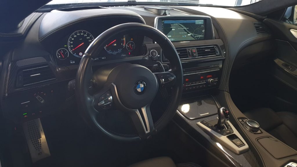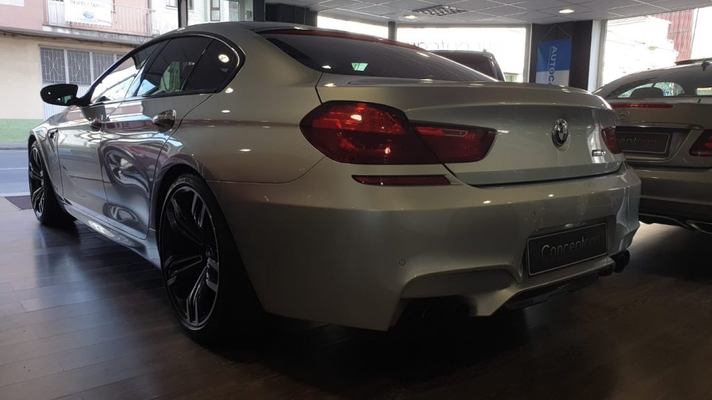 BMW M6 Grand Coupe equipado con Speed Limit Info, cámara 360º, Surround View, BMW Night Vision con reconocimiento de peatones, llanta 20″ M 433, BMW Individual equipamiento completo de cuero Cohibabraun, molduras interiores Carbon Fibre, Cambio con doble embrague M con Drivelogic, Sistema de sonido envolvente Bang & Olufsen, Head-up display, Telefonía confort con conexión ampliada para smartphone, navegación profesional, Surround View, BMW Night Vision con reconocimiento de peatones, Paquete de Competición (Aumento de potencia hasta los 575cv), Llamada de Emergencia Inteligente, Acceso confort, Calefacción de los asientos delanteros, Ventilación activa de los asientos delanteros, Paquete de retrovisores interior y exteriores, Asistente para luz de carretera, Faro de LED adaptativo, Acristalamiento con protección solar, cortinillas traseras y laterales eléctricas, Suspensión Adaptativa, asientos con reglaje eléctrico y memoria. PVP Nuevo 194.200