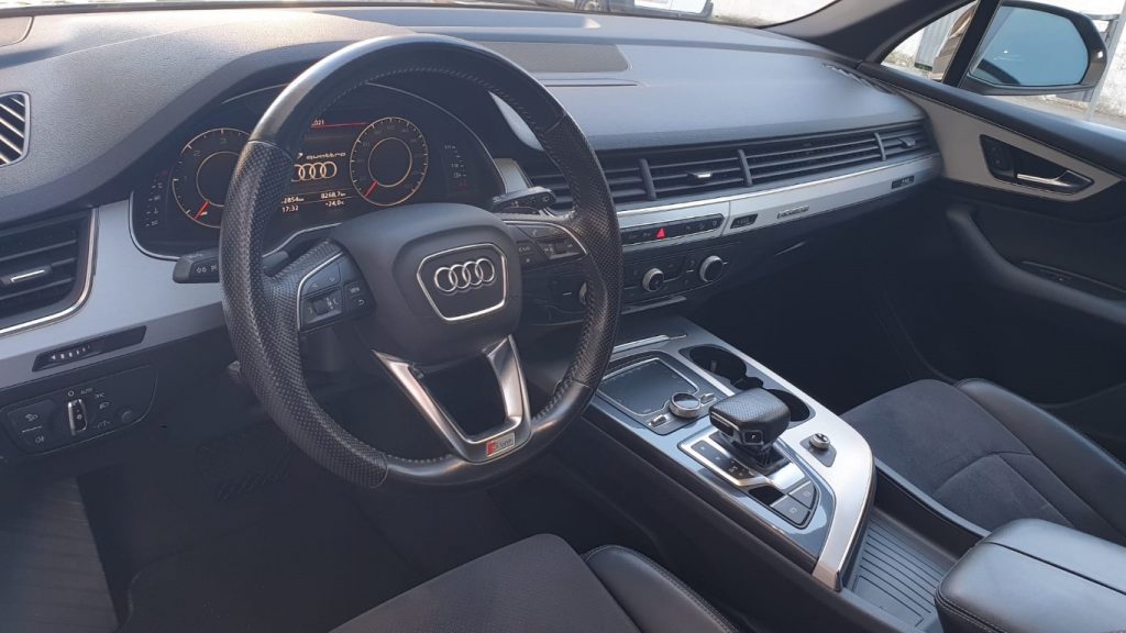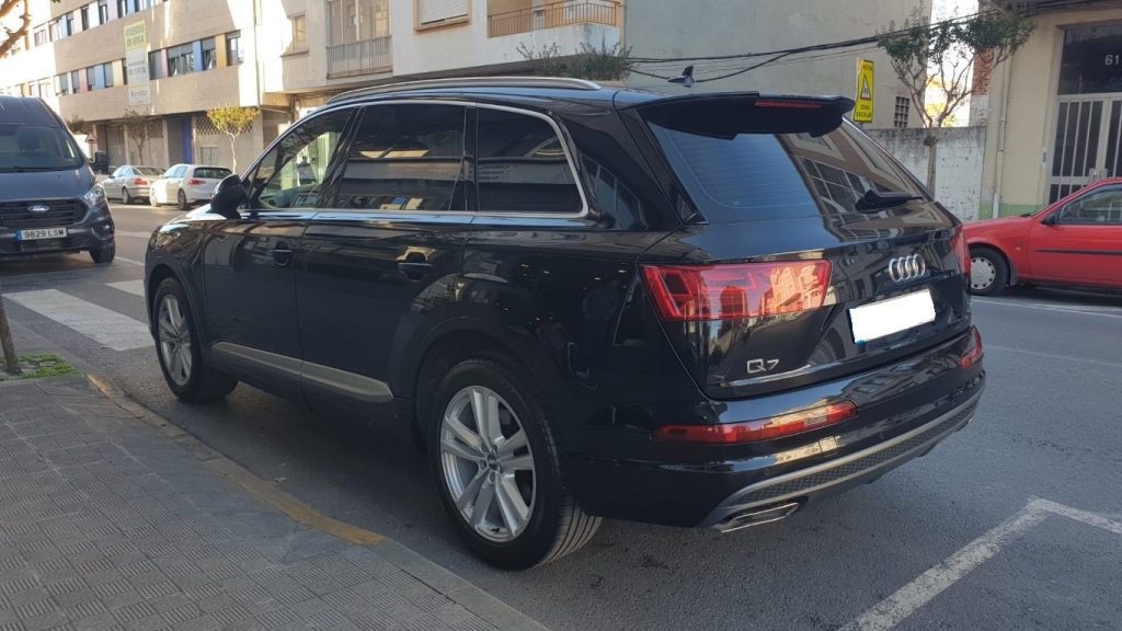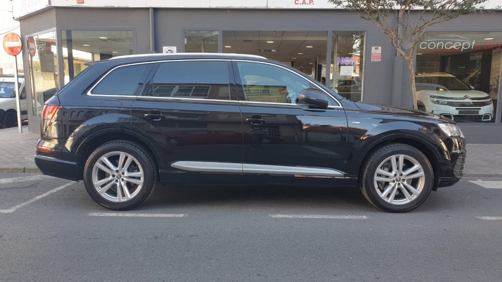 Audi Q7 Design 3.0 TDI Stronic, motor nuevo cambiado a los 180.000km en concesionario Audi, coche equipado con faros led, navegación, sensor de aparcamiento delantero y trasero, cámara de marcha atrás, tapicería mixta piel/tela, asientos con reglaje eléctrico, 7 plazas, las plazas traseras con accionamiento eléctrico, sensor de luces y lluvia, control de velocidad, volante multifunción, clima trizona, cuadro digital, portón eléctrico, bluetooth+USB, cambio automático con levas en el volante, lunas tintadas, espejos regulables y plegables eléctricos. 29.990 PVP financiando un min de 15.000€. 32.990 PVP de contado. Conceptcars concesionario en Chantada y Monforte de Lemos