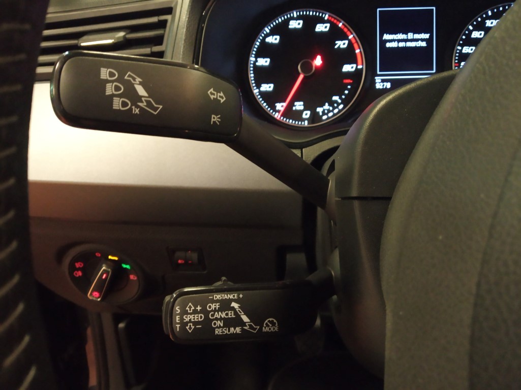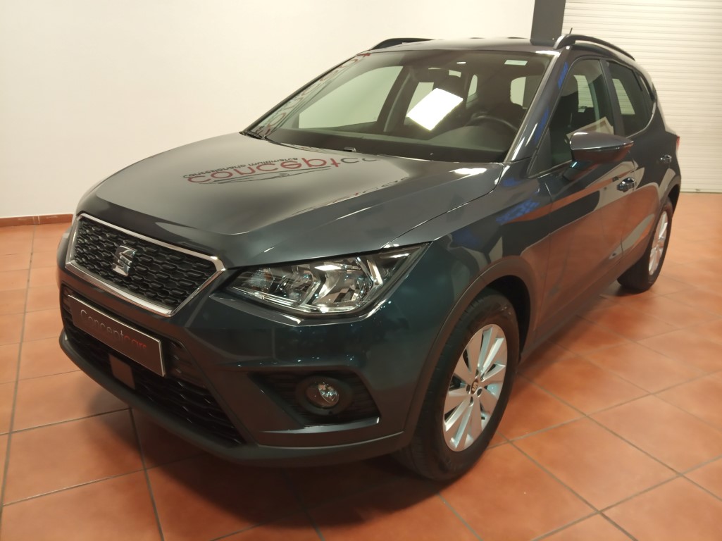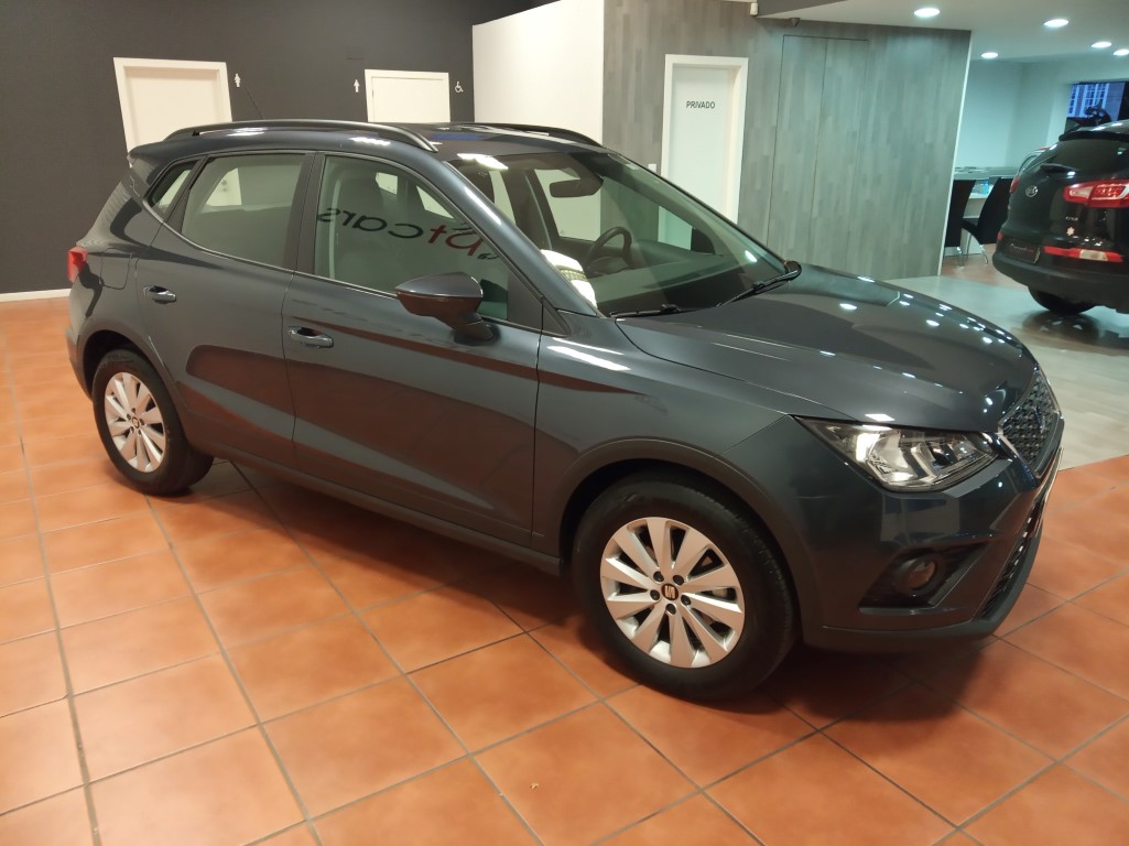 Seat Arona Style 1.0 TSI coche equipado con Full link, asistente de cambio de carril, control de velocidad adaptativo, exit assist, sensor de ángulo muerto, front assist, clima bizona, navegación, sensor de aparcamiento trasero, volante multifunción, bluetooth+USB, llanta 16″, espejos regulables y plegables eléctricos, faros de niebla con función cornering, sensor de luces y lluvia. 16.990 PVP financiando un min de 11.500 €. 19.990 PVP de contado.