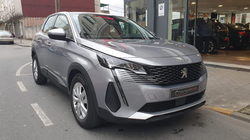 Peugeot 3008 Active Pack coche de gerencia equipado con faros ecoled, reconocimiento de señales, clima bizona, control de velocidad, volante multifunción, sensor de aparcamiento delantero y trasero, cámara de marcha atrás, asistente de cambio de carril, android auto y Apple carplay, bluetooth+USB, espejos regulables y plegables eléctricos. 23.995 PVP financiando un min de 15.000€. 25.995 PVP de contado. Conceptcars concesionario en Chantada y Monforte de Lemos. Disponible también otra unidad gasolina 130cv