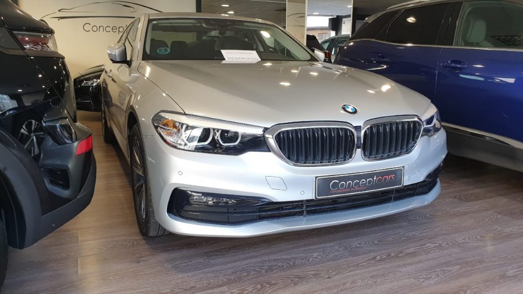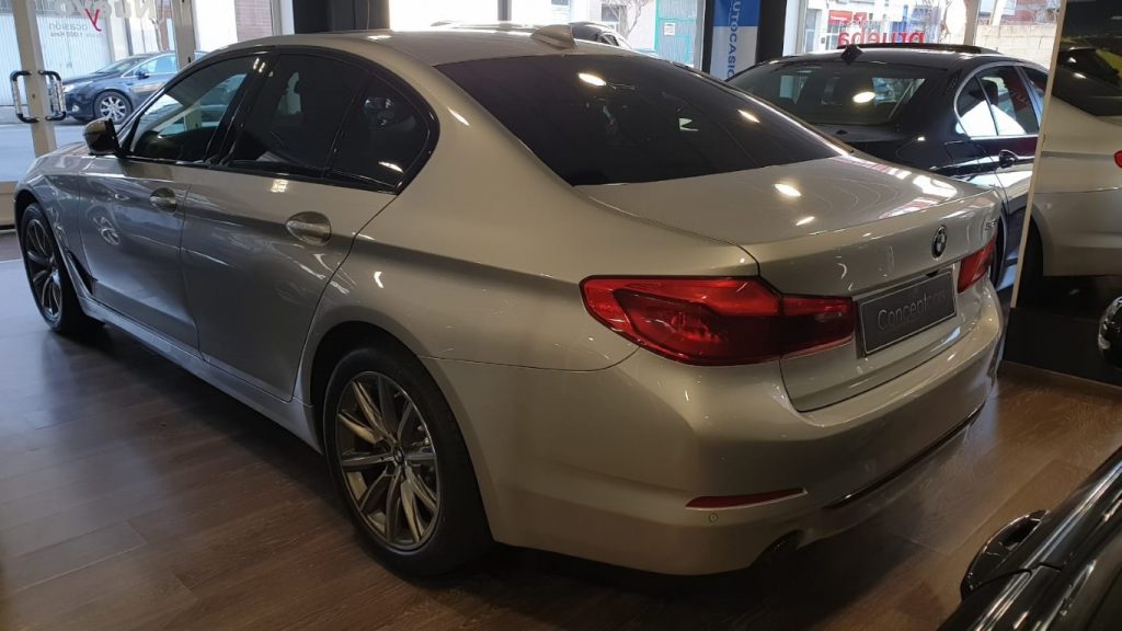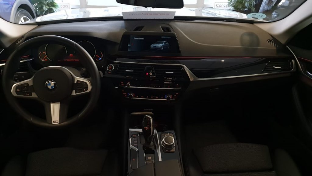 BMW 520d coche de gerencia con equipado con acabado Sport Line, faros led, sensor de aparcamiento delantero y trasero, cámara de marcha atrás, cambio automático, volante deportivo M multifunción, sensor de luces y lluvia, asistente de luz en carretera, cuadro digital, navegación profesional, control de velocidad, acceso confort y arranque sin llave, control por voz, asientos delanteros calefactados, portón maletero eléctrico, clima bizona, espejos regulables y plegables eléctricos, asiento conductor con reglaje eléctrico. 41.900 PVP financiando un min de 15.000€. 42.900 PVP de contado. Conceptcars concesionario en Chantada y Monforte de Lemos.