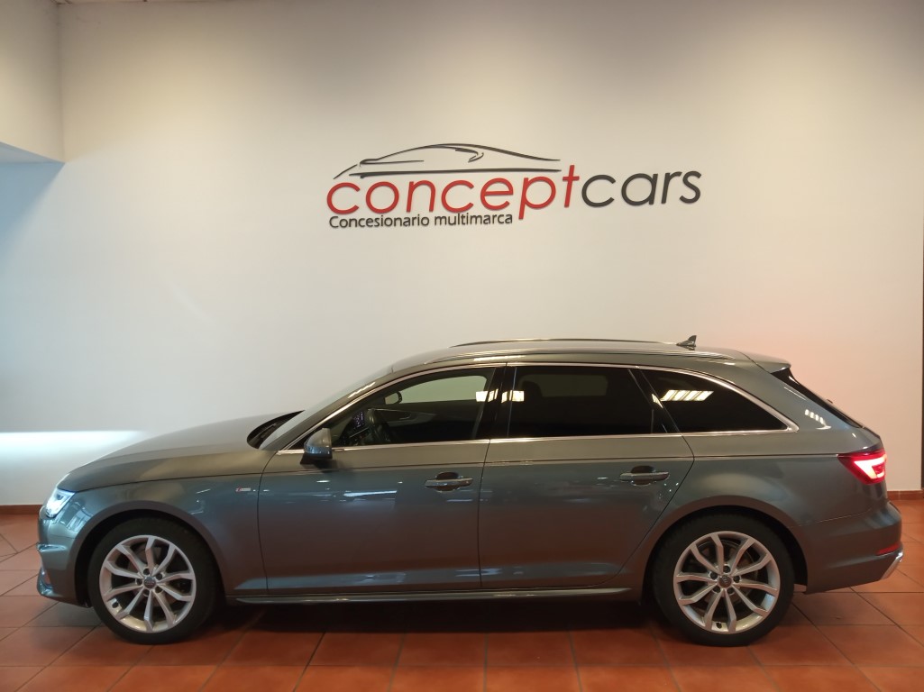 Audi A4 Avant Sline 35 TFSI Stronic, coche equipado con faros bixenon, paquete Sline, sensor de aparcamiento delantero y trasero, sensor de luces y lluvia, volante calefactado, portón del maletero eléctrico, clima trizona, cambio automático con levas en el volante, bluetooth+2USB, asientos deportivos, volante multifunción, control de velocidad, Audi presence, reconocimiento de señales, cuadro digital, Audi Connect, llanta 18″, espejos regulables y plegables eléctricos. Conceptcars concesionario en Chantada y Monforte de Lemos