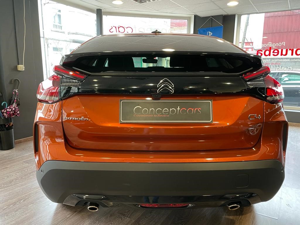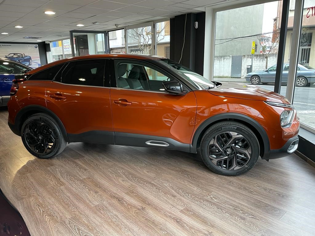 Citroen C4 Shine Puretech EAT8 coche equipado con faros led, head up display, cambio automático con levas en el volante, acceso confort y arranque sin llave, sensor de aparcamiento delantero y trasero, cámara de marcha atrás, navegación, android auto y Apple Carplay, clima bizona, volante multifunción, cambio automático de largas a cortas, sensor de luces y lluvia, asistente de cambio de carril, bluetooth+2 USB, tapicería piel/tela, control de velocidad adaptativo, espejos regulables y plegables eléctricos. Conceptcars concesionario en Chantada y Monforte de Lemos