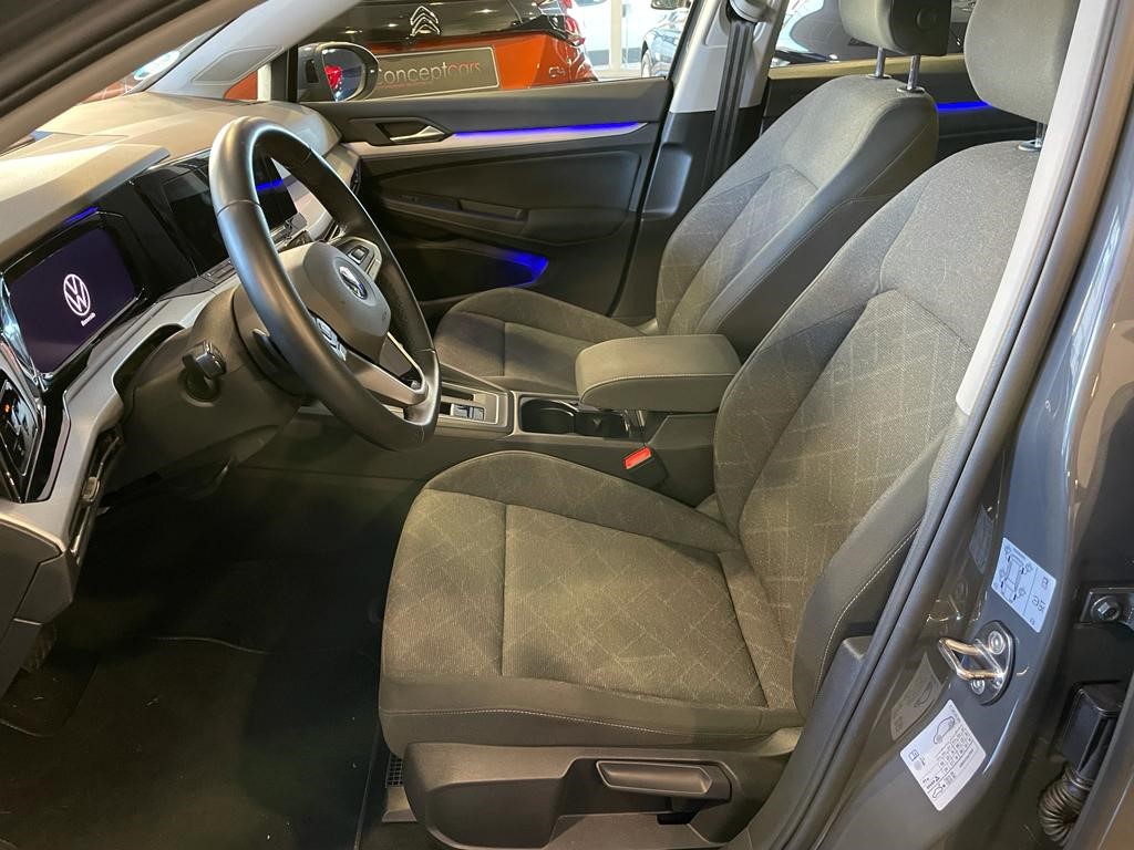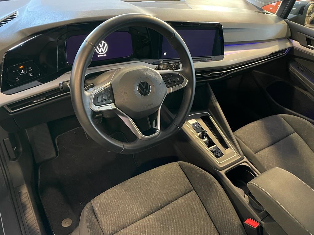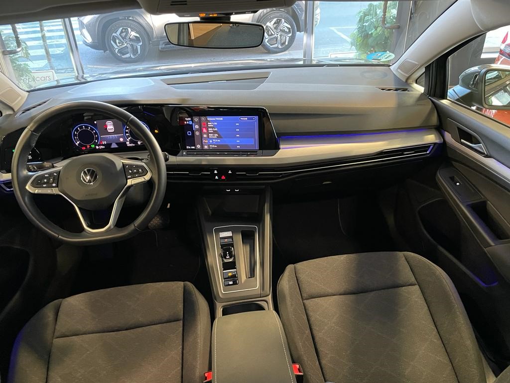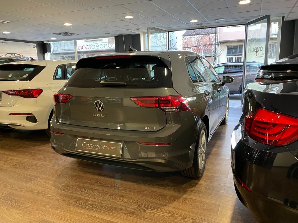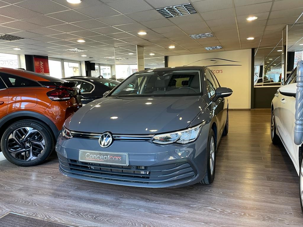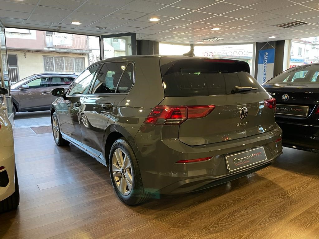 Volkswagen Golf Life 1.0 eTSI DSG coche de gerencia equipado con cambio automático con levas en el volante, reconocimiento de señales, clima trizona, navegador, faros led, sensor de aparcamiento delantero y trasero, cuadro digital, asistente de cambio de carril, clima bizona, app connect, control de crucero adaptativo, volante deportivo multifunción, llanta 17″, espejos regulables y plegables eléctricos. 25990 PVP financiando un min de 15.000€. 28.990 PVP de contado, Conceptcars concesionario en Chantada y Monforte de Lemos