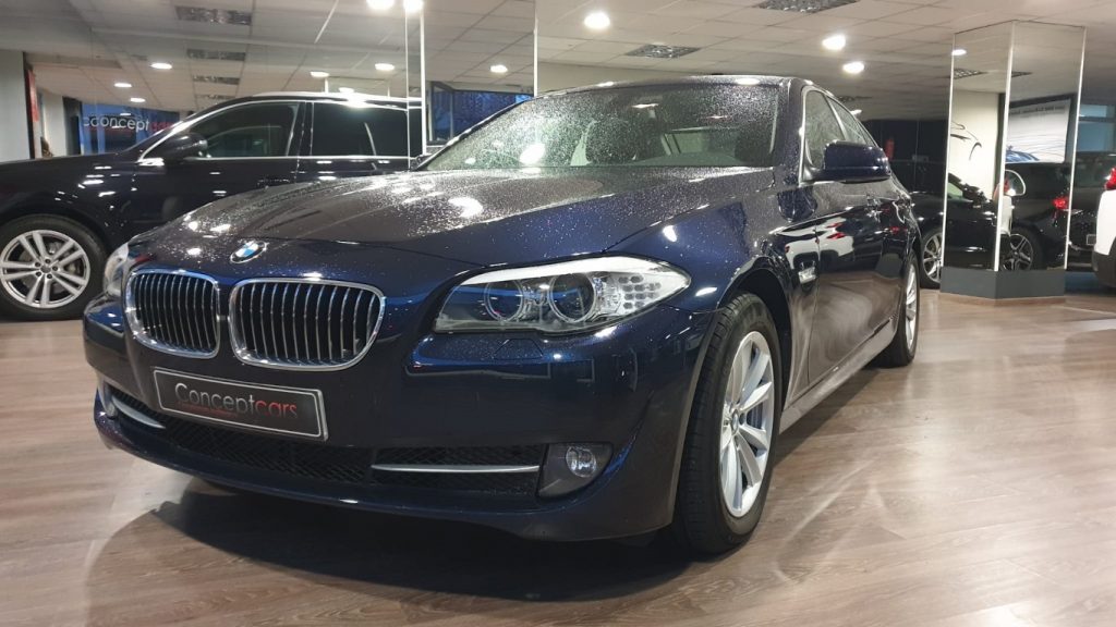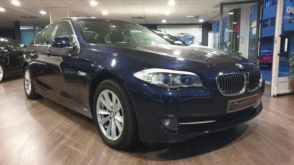 BMW 520d automático, coche matriculado 11/2010, nacional un solo propietario, coche equipado con faros bixenon, navegación, techo solar, cambio automático deportivo con levas en el volante, asiento conductor con reglaje parcial eléctrico, cortinillas eléctricas traseras, sensor de aparcamiento delantero y trasero, volante multifunción, control de velocidad, sensor de luces y lluvia, bluetooth, arranque sin llave. 19.990 PVP financiando un min de 12.000€. 20.990 PVP de contado. Conceptcars concesionario Chantada y Monforte de Lemos.
