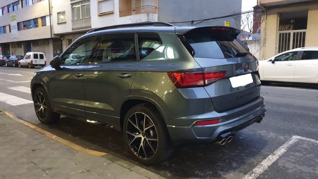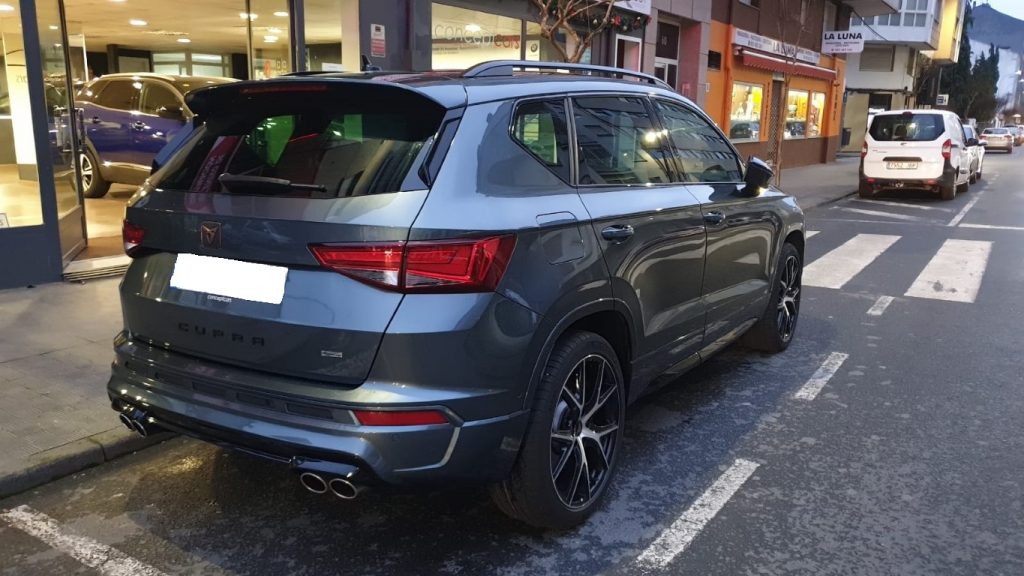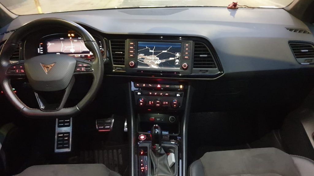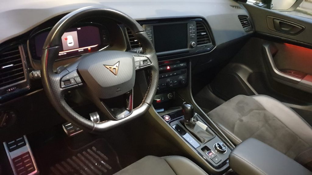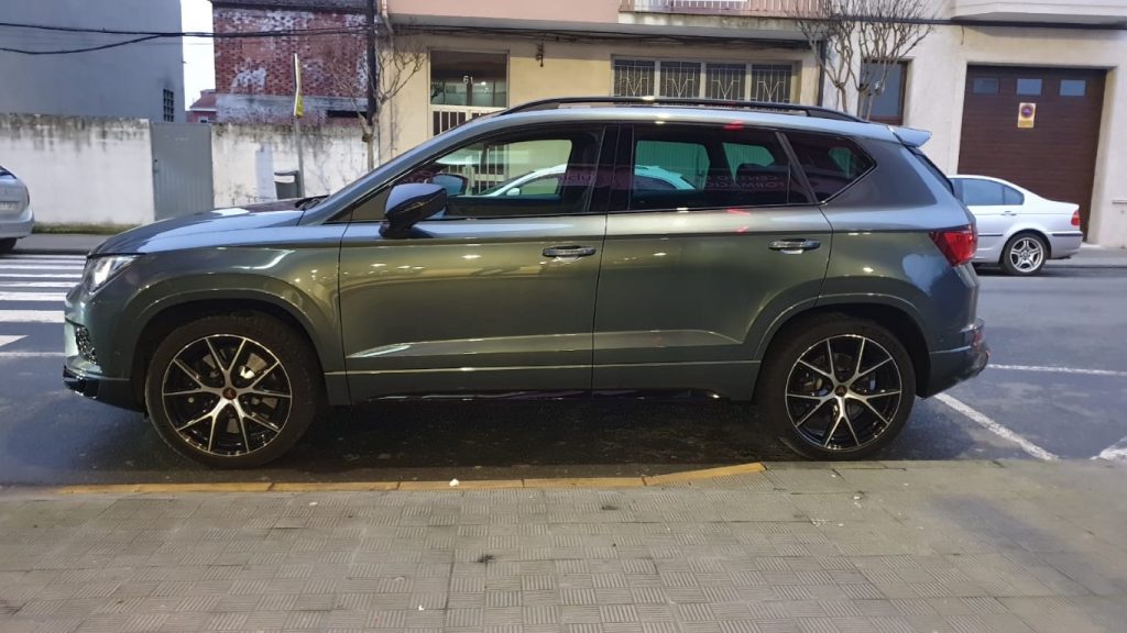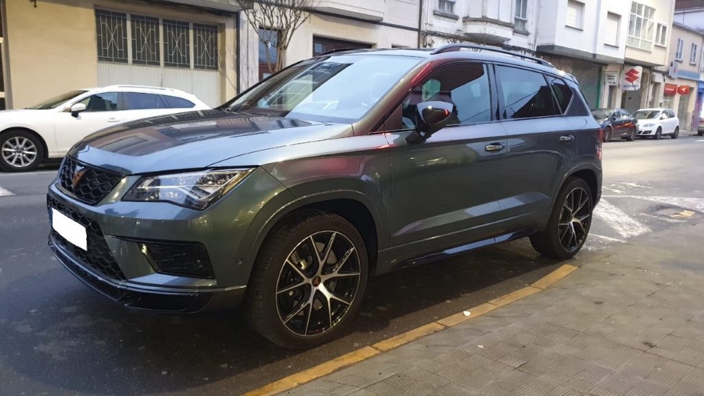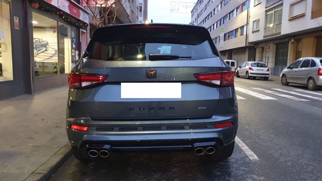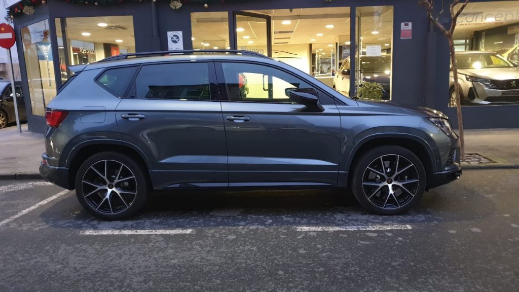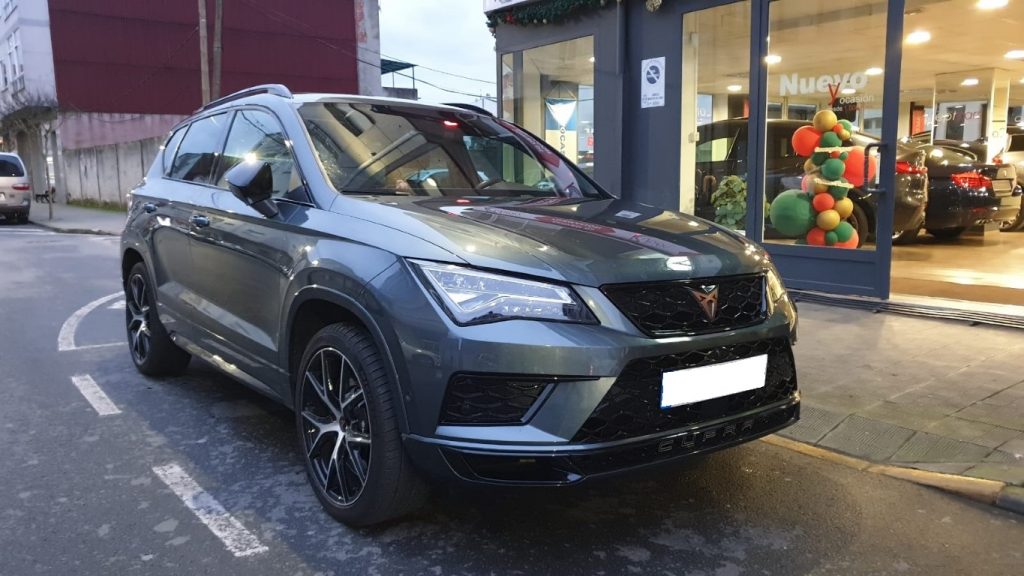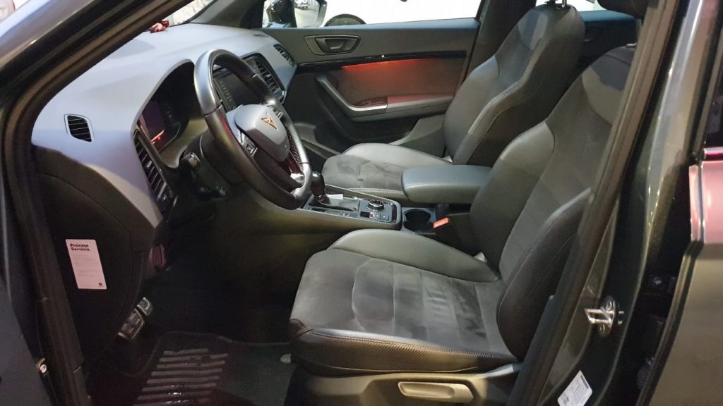 Cupra Ateca 2.0 TSI 4Drive DSG coche nacional de un solo propietario con garantía oficial hasta 09/2024 o 100.000km equipado con techo panorámico, faros led, cambio automático con levas en el volante, sensor de aparcamiento delantero y trasero, cámara 360º, park assist, portón eléctrico, tapicería mixta piel/alcántara, sensor de luces y lluvia, navegación, full link, volante multifunción, control por voz, cambio automático de largas a cortas, llanta 19″, asistente de cambio de carril, front assist, cuadro digital, espejos regulables y plegables eléctricos. 33.990 PVP financiando un min de 15.000€. 35.990 PVP de contado. Vehículo con certificación de km e historial de revisiones en concesionario oficial, revisión preentrega. Conceptcars concesionario en Chantada y Monforte de Lemos. Visita nuestra pagina web WWW.CONCEPTCARS.ES
