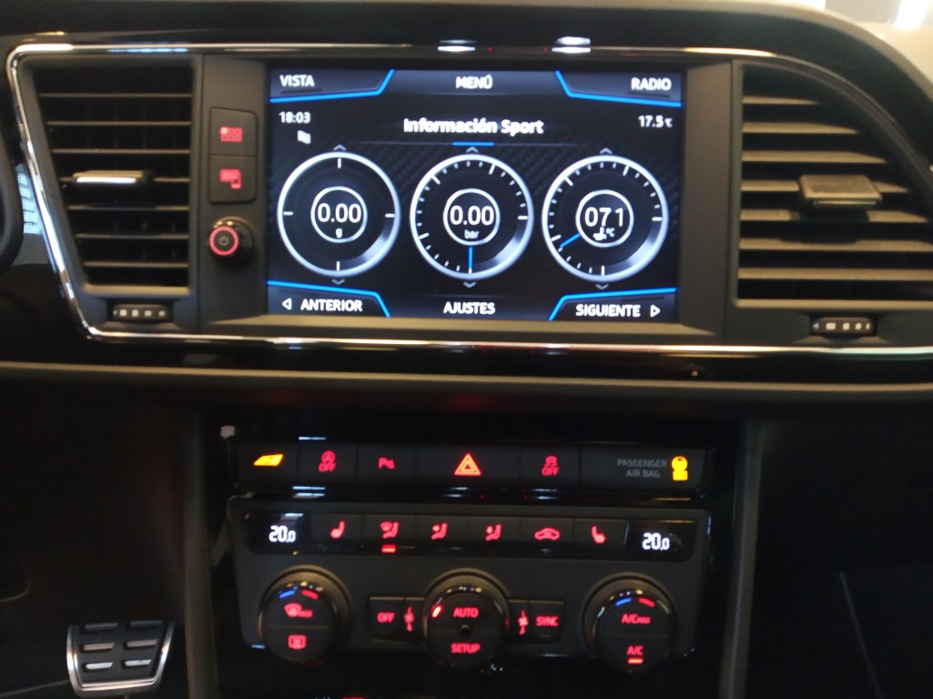 SEAT LEON 2.0 TSI 213KW (290CV) DSG 7 coche nacional equipado con arranque sin llave con acceso confort, cuadro digital, asientos tipo bucket calefactables, cámara trasera + Parktronic delantero y trasero , llanta 19, faros LED, Rueda de repuesto, navegación, full link, espejos regulables y plegables eléctricos, equipo de sonido beats audio, asistente de aviso de salida de carril, paquete iluminación ambiente, tapicería alcántara. 26.990 PVP financiando un min de 15.000€. 29.990 PVP de contado. Vehículo con certificación de km e historial de revisiones en concesionario oficial, revisión preentrega. Conceptcars concesionario en Chantada y Monforte de Lemos. Visita nuestra pagina web WWW.CONCEPTCARS.ES