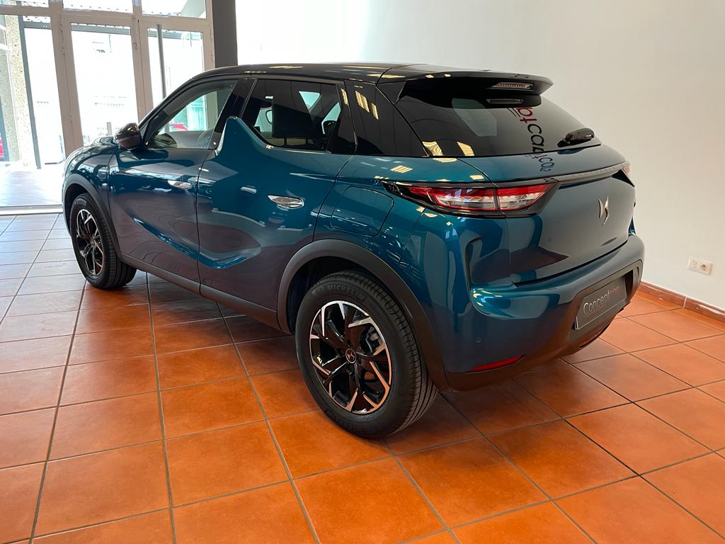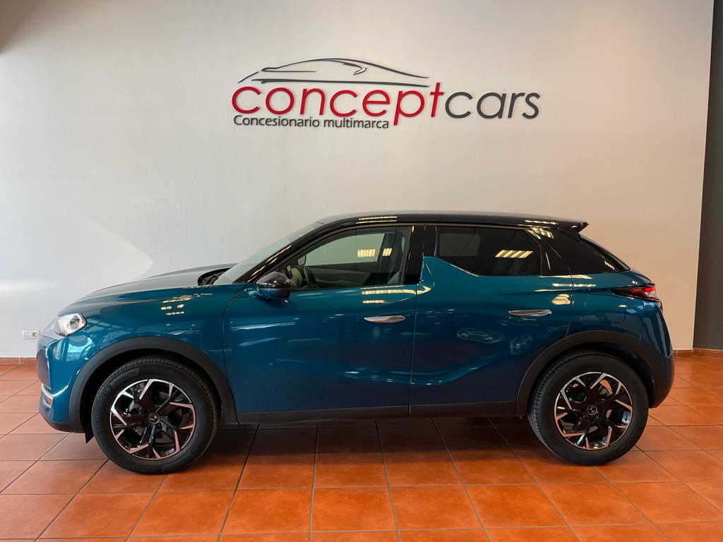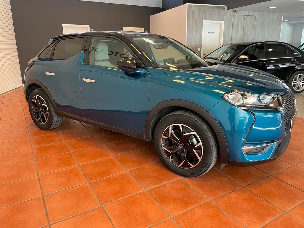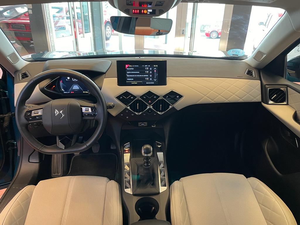 DS 3 Crossback coche equipado con cuadro digital, arranque sin llave, Start/Stop, Lane Assist, sensor de aparcamiento tarseros, android auto y Apple Carplay, sensor de luces y lluvia, climatizador, volante multifunción, bluetooth+USB, control de velocidad, frenado automático de emergencia, tapicería piel/tela, espejos regulables y plegables eléctricos. 22.500 PVP financiando un min de 15.000€. 24.500 PVP de contado. Vehículo certificado de km, con revisión preentrega y mantenimiento incluido. Conceptcars concesionario en Chantada y Monforte de Lemos.