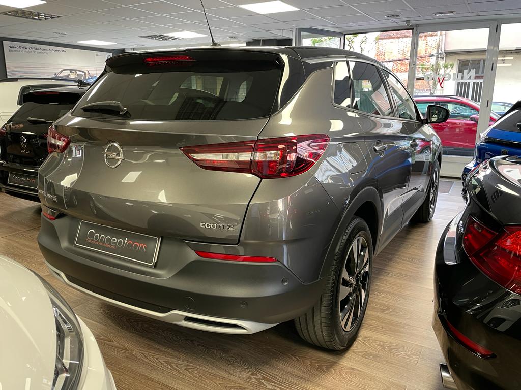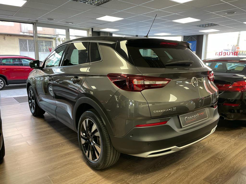 Opel Grandland X 1.2 Turbo 130cv equipado con luz LED, sensores de aparcamiento delanteros, trasero y laterales, cámara de marcha atrás, sensor de luces y lluvia, bluetooth+USB, control de velocidad, clima bizona, asistente de cambio de carril, tapicería tela-cuero, volante multifunción, espejos regulables y plegables eléctricos. 20.5000 PVP financiando un importe min de 15.000€. 22.5000 PVP de contado. Conceptcars concesionario en Chantada y Monforte de Lemos
