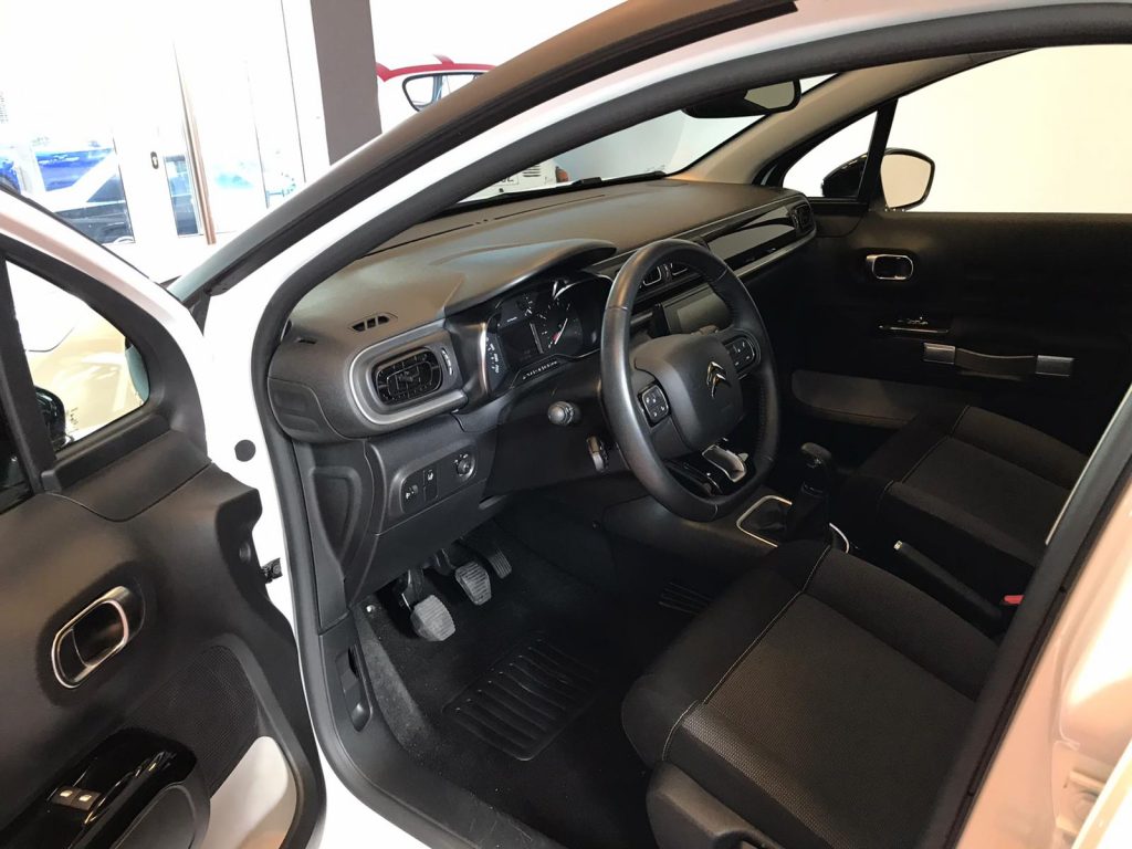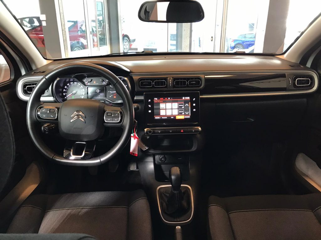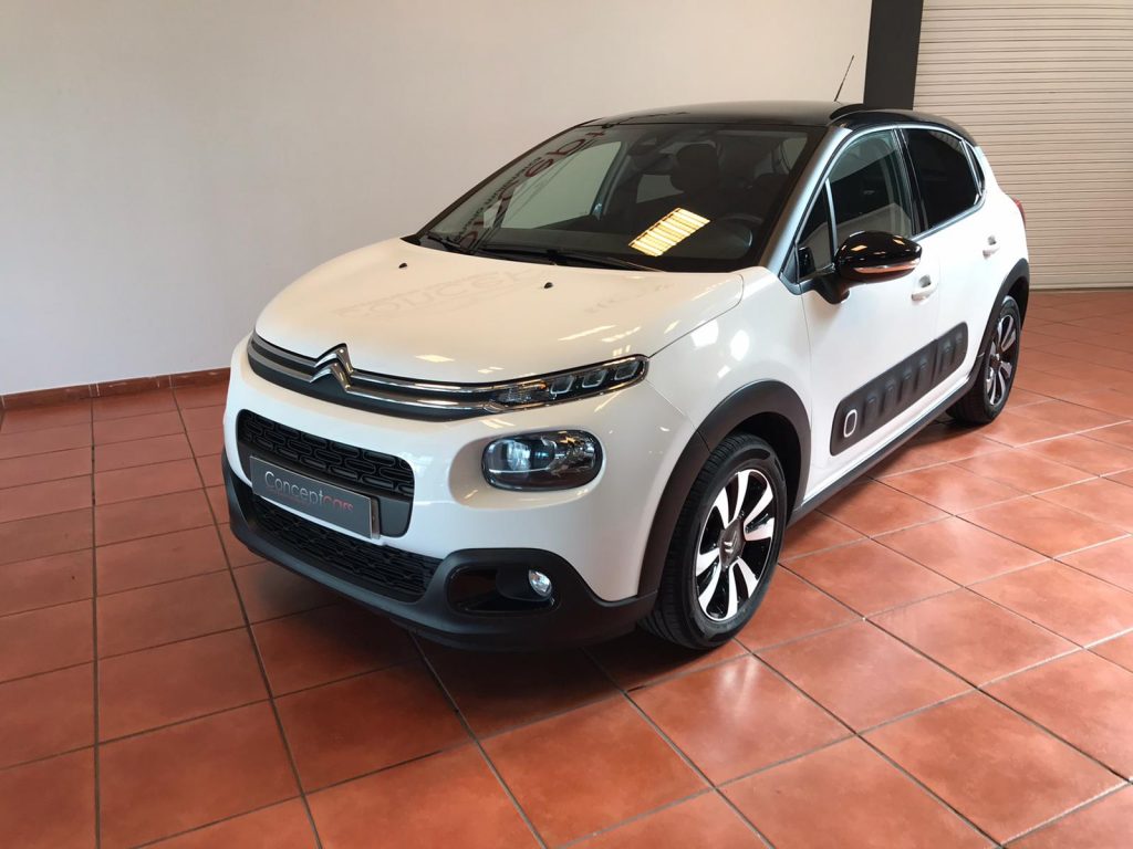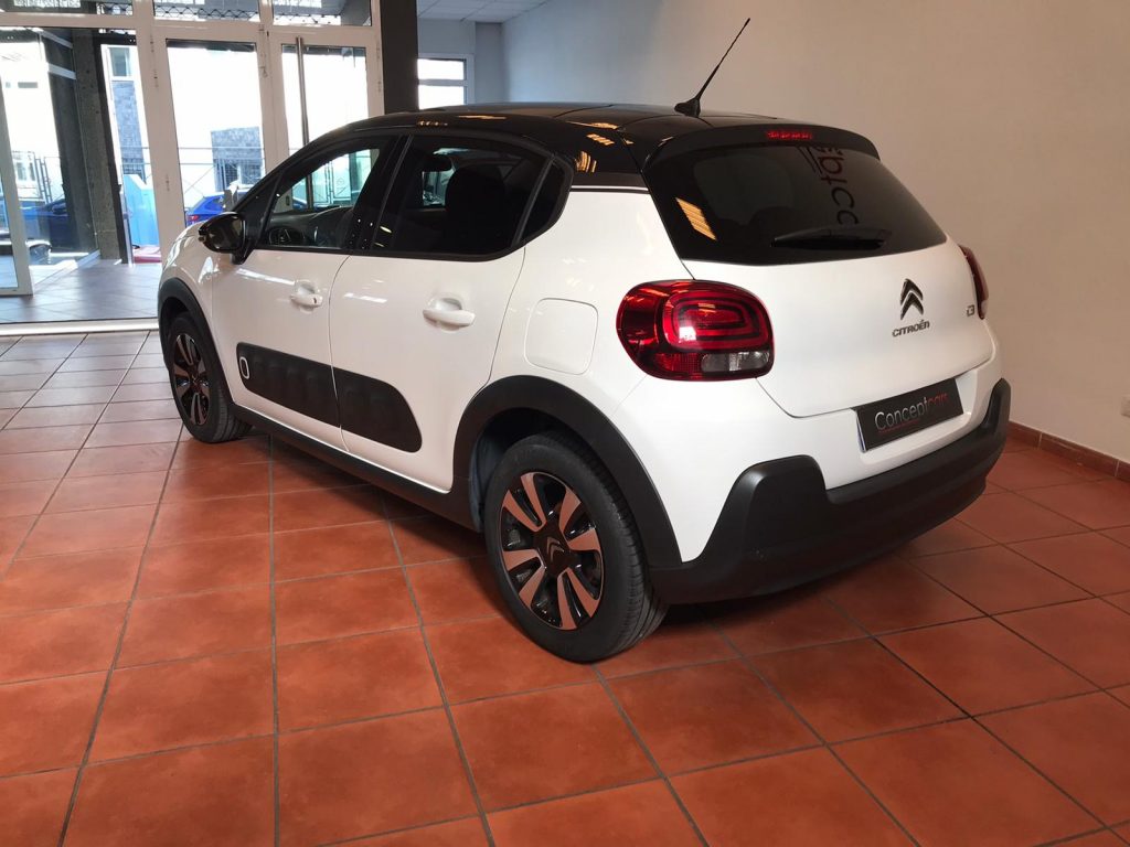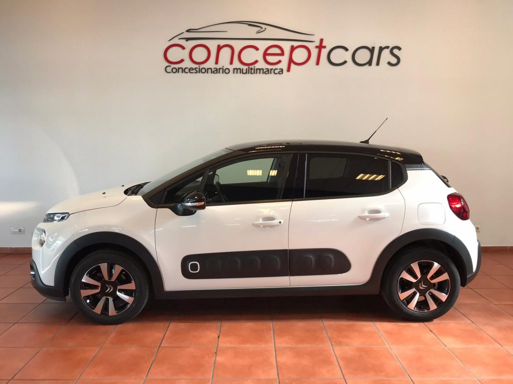 Citroen C3 coche equipado con Start/Stop, climatización, sensor de luces y lluvia, , alerta de atención del conductor, techo panorámico, active safety brake, lectura de señales de trafico, cambio automático de luces de carretera, sensor de aparcamiento trasero, cámara de marcha atrás, Bluetooth+USB, volante multifunción, control de velocidad, espejos regulables y plegables eléctricos, 14.500PVP financiando un mínimo de 10.000€. 16.500 PVP de contado. Vehículo certificado de km, con revisión preentrega y mantenimiento incluido. Conceptcars concesionario en Chantada y Monforte de Lemos.