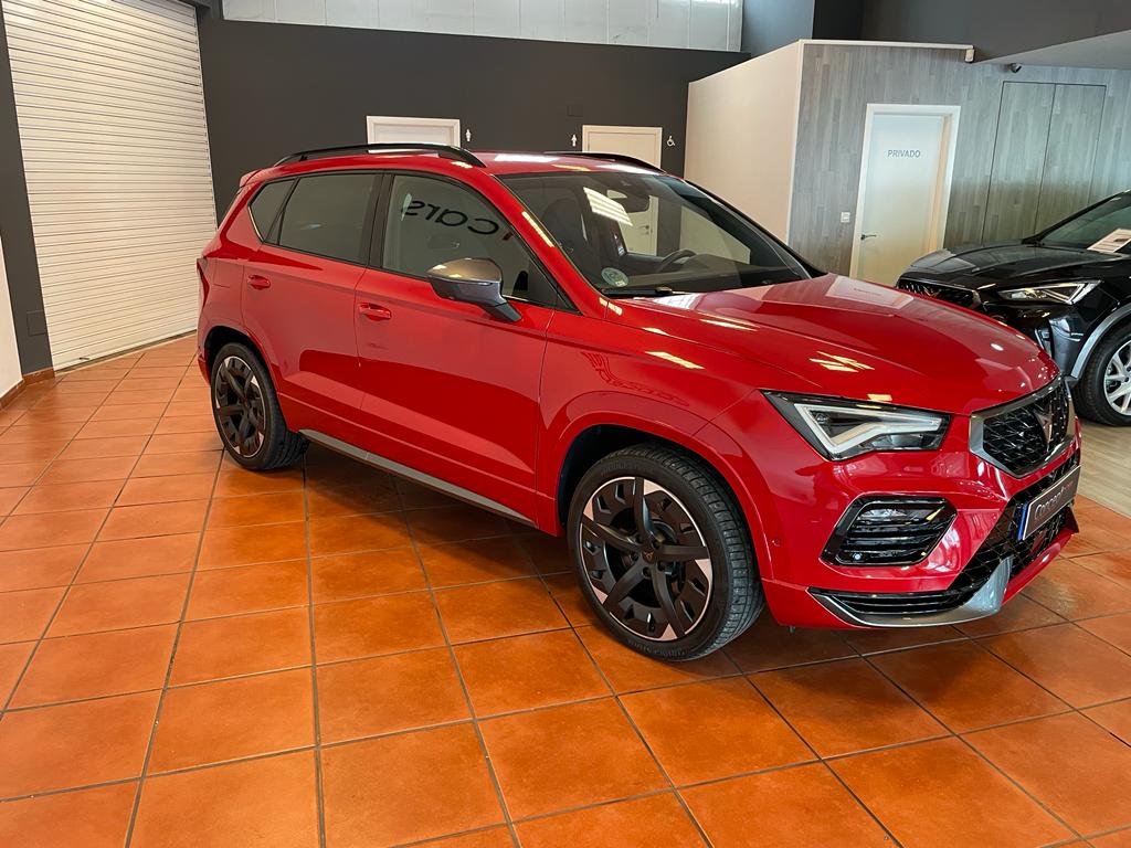 Cupra Ateca 2.0 TSI 4Drive DSG coche nacional equipado con cuadro digital, apertura y arranque sin llave, asientos deportivos, enganche de remolque eléctrico original, faros led, navegación, cambio automático con levas en el volante, volante calefactable, sensor de aparcamiento delantero y trasero, cámara 360º, park assist, portón eléctrico, clima trizona, modos de conducción, sensor de luces y lluvia, volante multifunción, control por voz, cambio automático de largas a cortas, llanta 19″, asistente de cambio de carril, front assist, espejos regulables y plegables eléctricos. 35.990 PVP financiando un min de 15.000€. 38.990 PVP al contado. Vehículo con certificación de km y revisión preentrega. Conceptcars concesionario en Chantada y Monforte de Lemos.