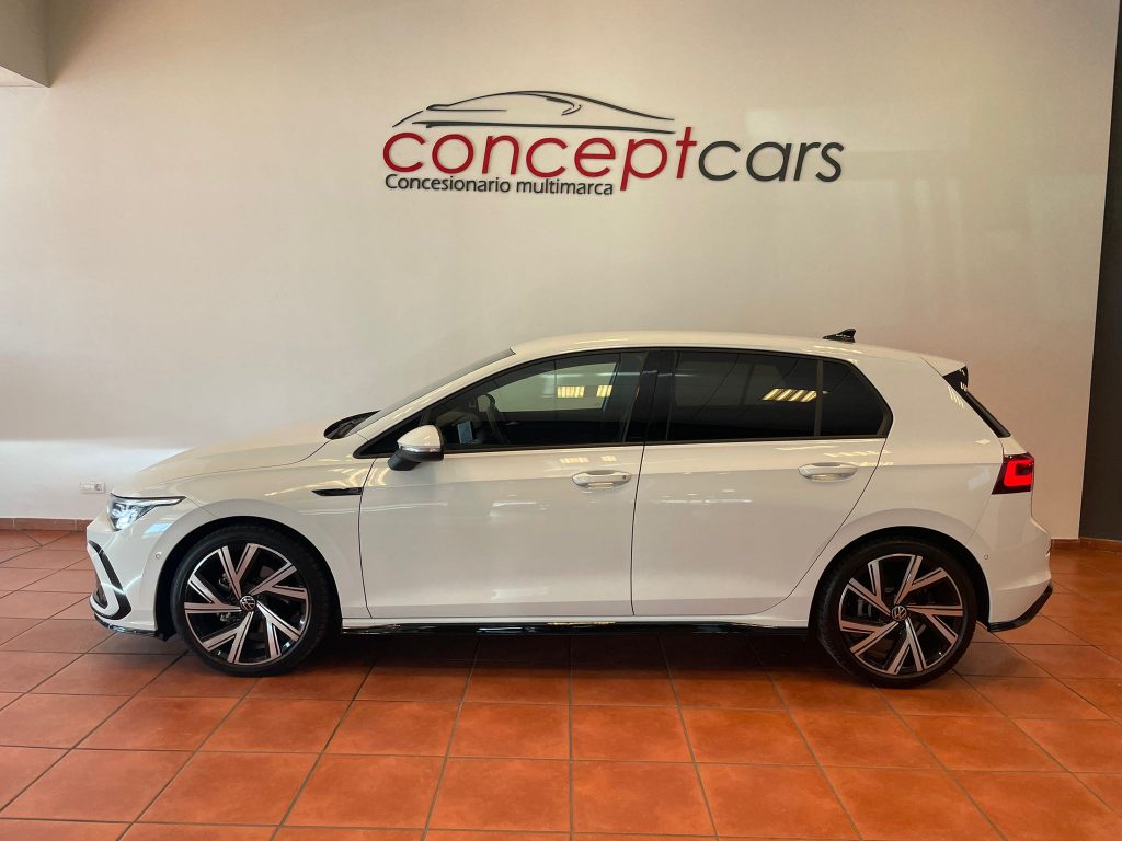 Volkswagen Golf 8 R- Line 2.0 TDI 150cv DSG7 coche nacional equipado con cuadro digital, faros direccionales LED, asientos deportivos, cambio automático con levas en el volante, reconocimiento de señales, clima trizona, navegador, sensor de aparcamiento delantero y trasero, cámara de marcha atrás, asistente de cambio de carril, asistente de mantenimiento de carril, asistente de aparcamiento, asistente de luces de carretera, arranque por botón, clima trizona, app connect, Car play, control de crucero adaptativo, llanta 18″, espejos regulables y plegables eléctricos. 31.990 PVP financiando un min de 15.000€. 34.990 PVP al contado, Conceptcars concesionario en Chantada y Monforte de Lemos.