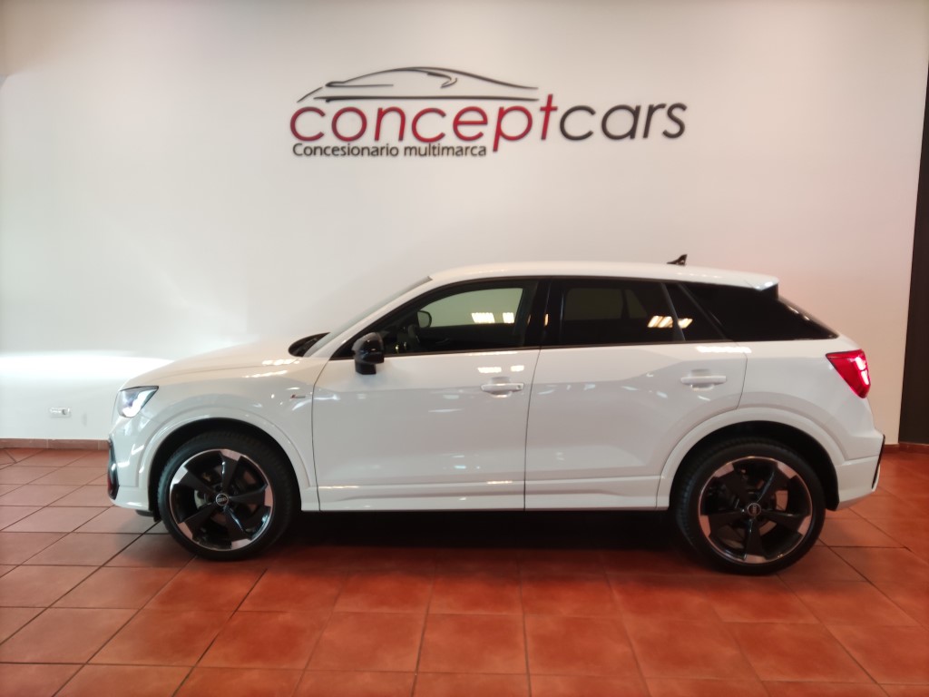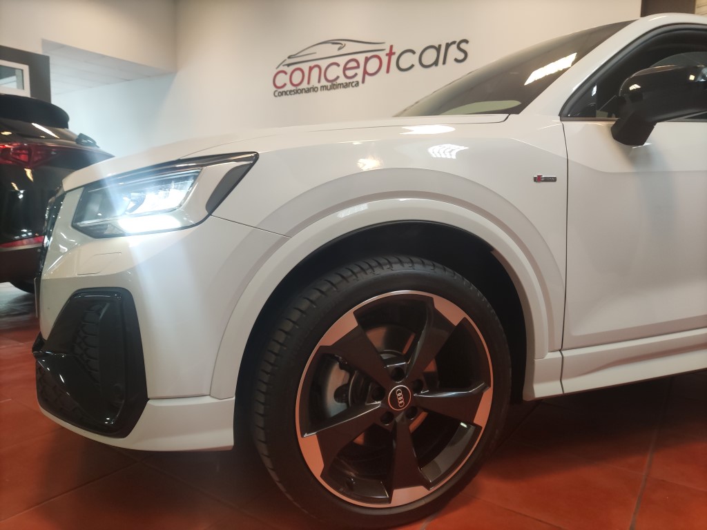 Audi Q2 Black line 35 TFSI coche de nacional equipado con cuadro digital, navegador, faros LED, sensor de aparcamiento delantero y trasero, cámara de marcha atrás, paquete confort plus, asistente de cambio de carril, asistente de mantenimiento de carril, asistente de ayuda en arranque en pendiente, clima bizona, Car play, Start/Stop, control de crucero adaptativo , Bluetooth+USB, llanta 19″, sensor de luces y lluvia, espejos regulables y plegables eléctricos. 29.990 PVP financiando un min de 15.000€. 32.990 PVP al contado. Conceptcars concesionario en Chantada y Monforte de Lemos.