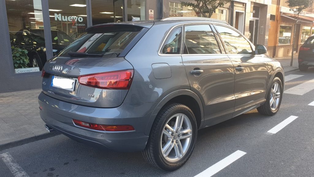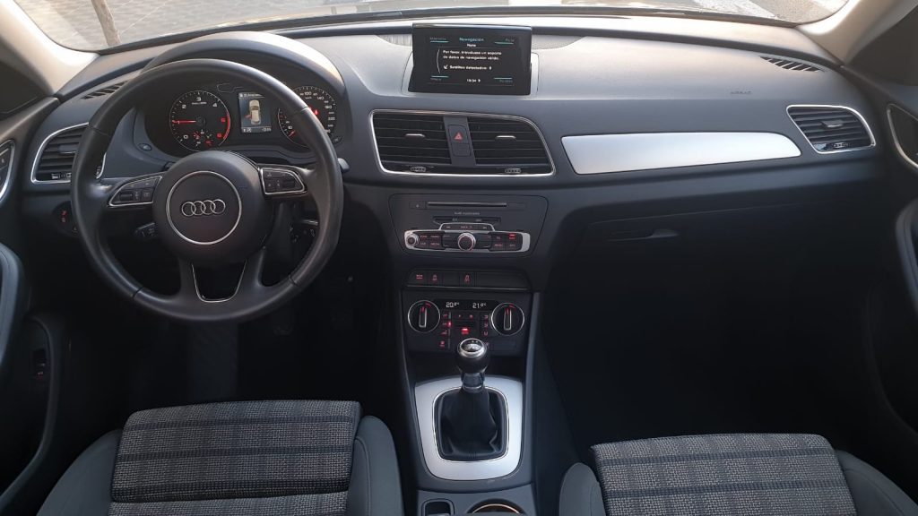 Audi Q3 Sport Edition 2.0 TDI coche nacional equipado con faros bixenon, luz diurna, navegación, sensores de aparcamiento traseros, sensor de luces y lluvia, bluetooth+USB , clima bizona, volante multifunción, Start/Stop, control de velocidad, Audi music interface, cambio automático a luces de carretera, espejos regulables y plegable eléctricos , llanta 18″. 22.990 PVP financiando un min de 14.000€. 25.990PVP al contado. Conceptcars concesionario en Chantada y Monforte de Lemos.