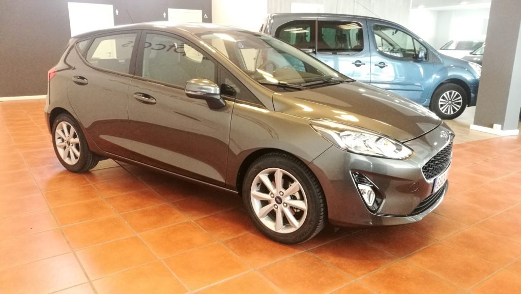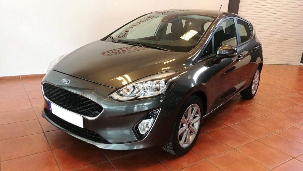 Ford Fiesta Trend + 1.0 Ecoboost coche nacional equipado con sensores de aparcamiento tarseros, climatizador, asistente de cambio de carril, Android Auto y Apple Car Play, control de crucero, Bluetooth+ USB, volante multifunción, espejos regulables y plegables eléctricos, sensor de luces. 11.990€ financiado y 12.990€ al contado. 3 años de garantía Ford o 100.000km. Vehículo certificado de km. Conceptcars concesionario en Chantada y Monforte de Lemos.