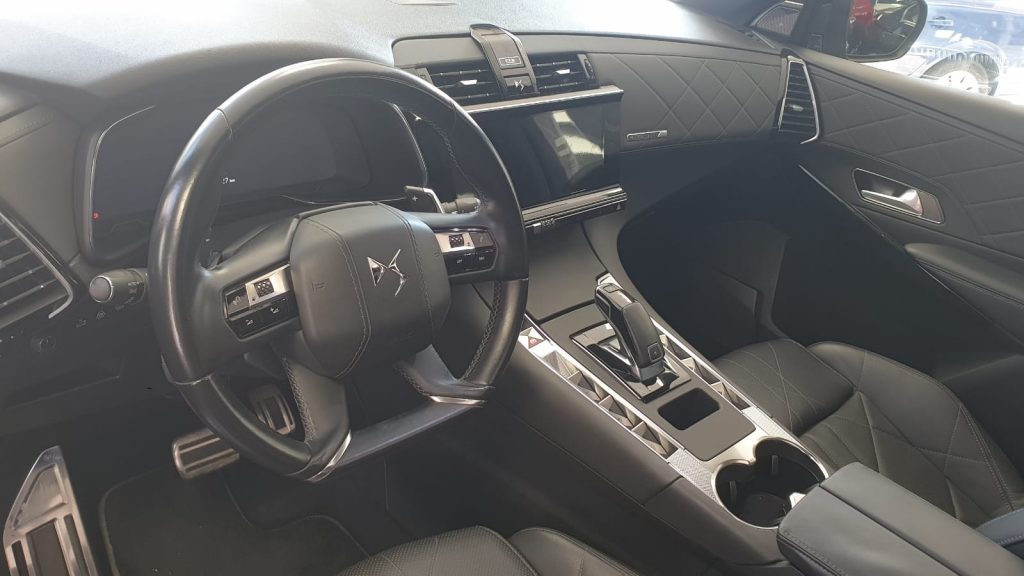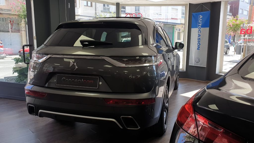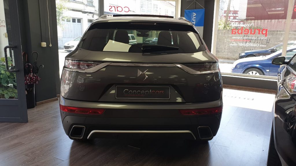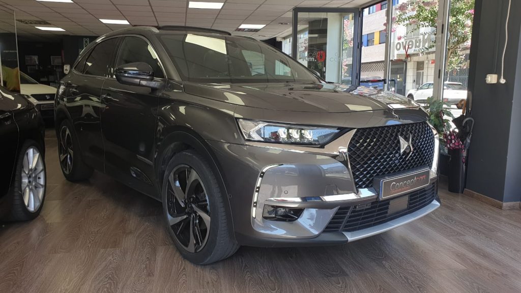DS7 Crossback BlueHDI Grand Chic Automático coche nacional equipado con cuadro digital, Full LED, apertura y arranque sin llave, navegación, techo solar practicable, Android auto y Apple Carplay, Mirror link, modos de conducción, cambio automático con levas en el volante, Asistente de cambio de carril, asistente de mantenimiento de carril, asistente de arranque en pendiente, sensor de aparcamiento delantero y trasero, cámara de marcha atrás, cámara delantera, portón eléctrico, tapicería de cuero, carga inalámbrica del teléfono móvil, sensor de luces y lluvia, volante multifunción, control por voz, cambio automático de largas a cortas, reconocimiento de señales de trafico, llanta 19″, control de velocidad adaptativo, espejos regulables y plegables eléctricos, clima bizona, asientos eléctricos con memoria y regulación lumbar, asientos traseros con regulación lumbar eléctrica. 27.995€ financiando un min. de 20.000€. 29.995€ al contado. Vehículo certificado de km, con revisión preentrega y mantenimiento incluido. Conceptcars concesionario en Chantada y Monforte de Lemos.