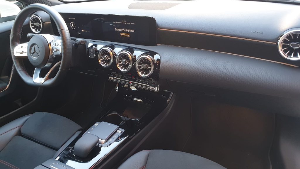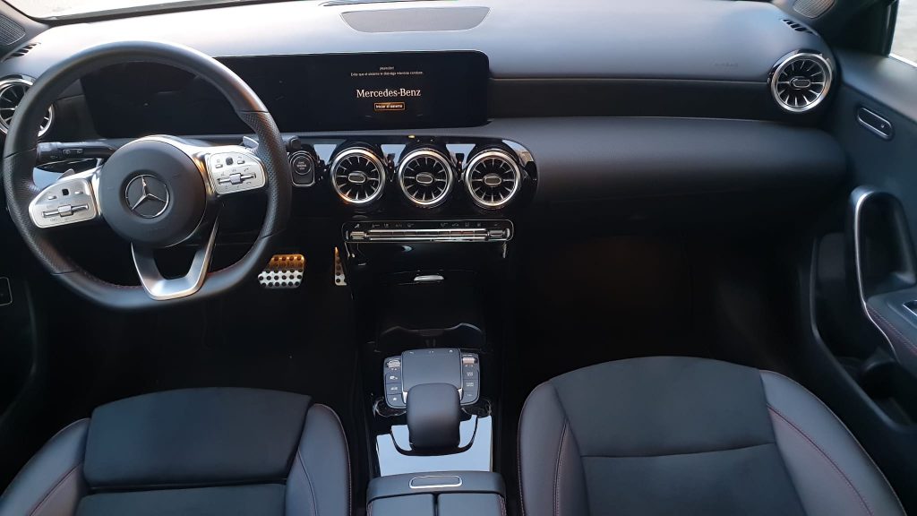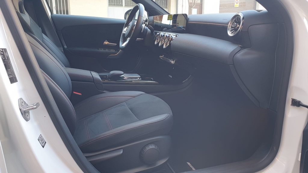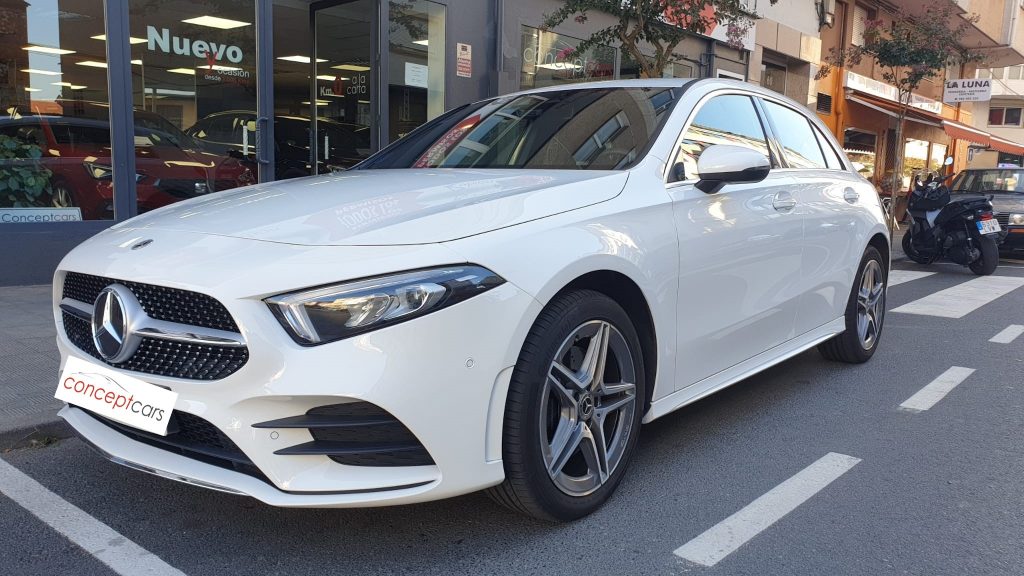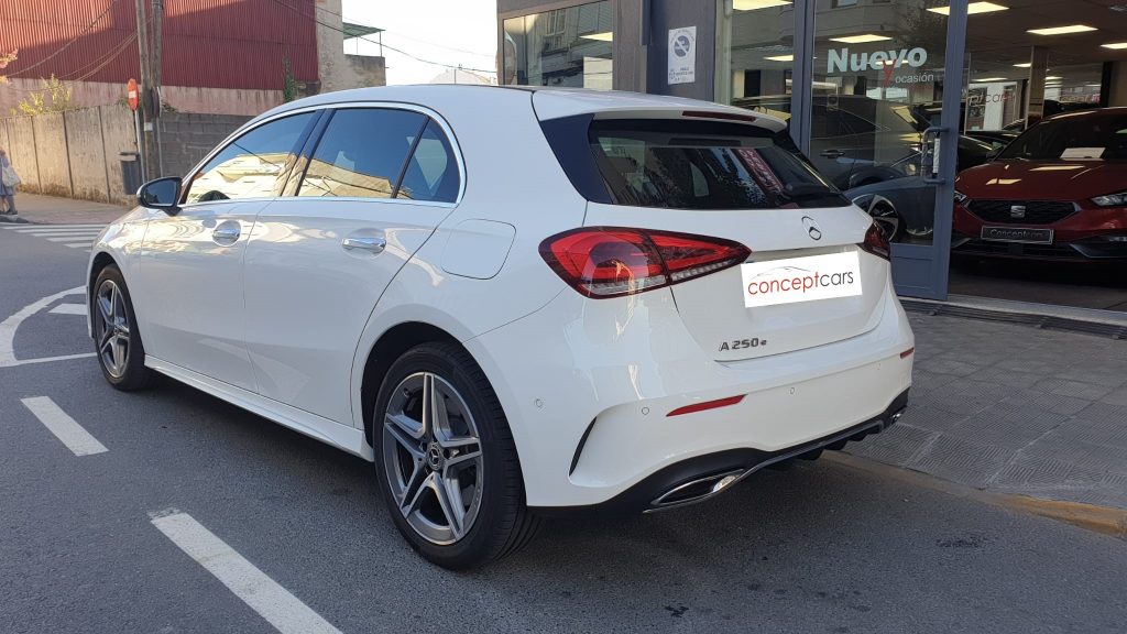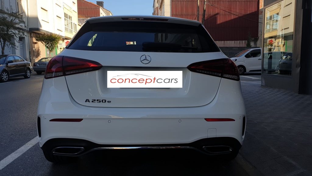 Mercedes Benz A220e hibrido enchufable coche nacional equipado con Full LED, cuadro digital, navegación, sensores de aparcamientos delanteros y traseros, cámara de marcha atrás, park assist, detección de cambio de carril, tapicería piel/alcántara, control de velocidad adaptativo, asientos calefactables, volante multifunción, espejos regulables y plegables eléctricos, modos de conducción, bluetooth+USB, Apple Carplay y Android Auto, climatizador, llanta 18″, avisador de distancia, sensor de luces y lluvia, espejos regulables y plegables eléctricos. Vehículo certificado de kilómetros, con historial de mantenimientos en casa oficial. Conceptcars concesionario en Chantada y Monforte de Lemos.