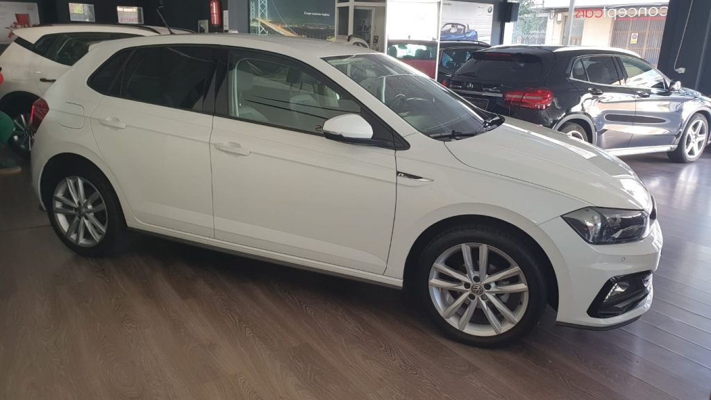 Volkswagen Polo R-Line coche nacional equipado con sensores de aparcamiento delanteros y traseros, Start/Stop, luz diurna LED, sensor de luces y lluvia, control de velocidad adaptativo, front assist, Apple Carplay y Android Auto, asistente de arranque en pendiente, climatizador, faros de niebla, volante multifunción, , Bluetooth+ USB, espejos regulables y plegables eléctricos, Llanta 17″ . 16.990 PVP financiando un mínimo de 15.000€. 19.990€ al contado. Vehículo certificado de km, con revisión preentrega y mantenimiento incluido. Conceptcars concesionario en Chantada y Monforte de Lemos.