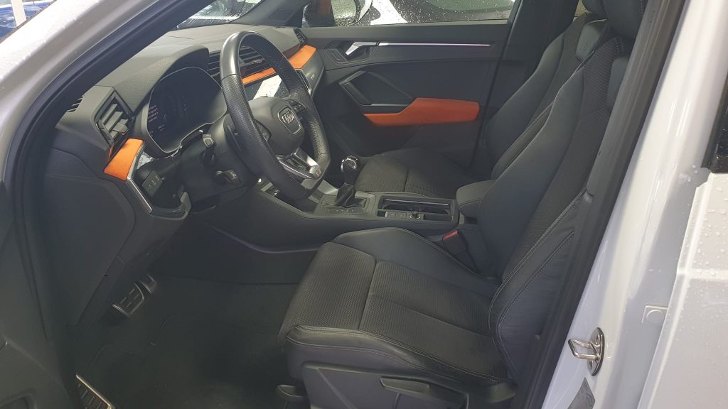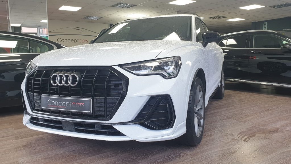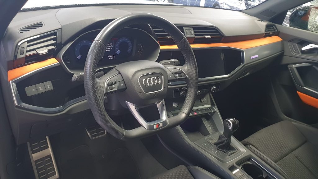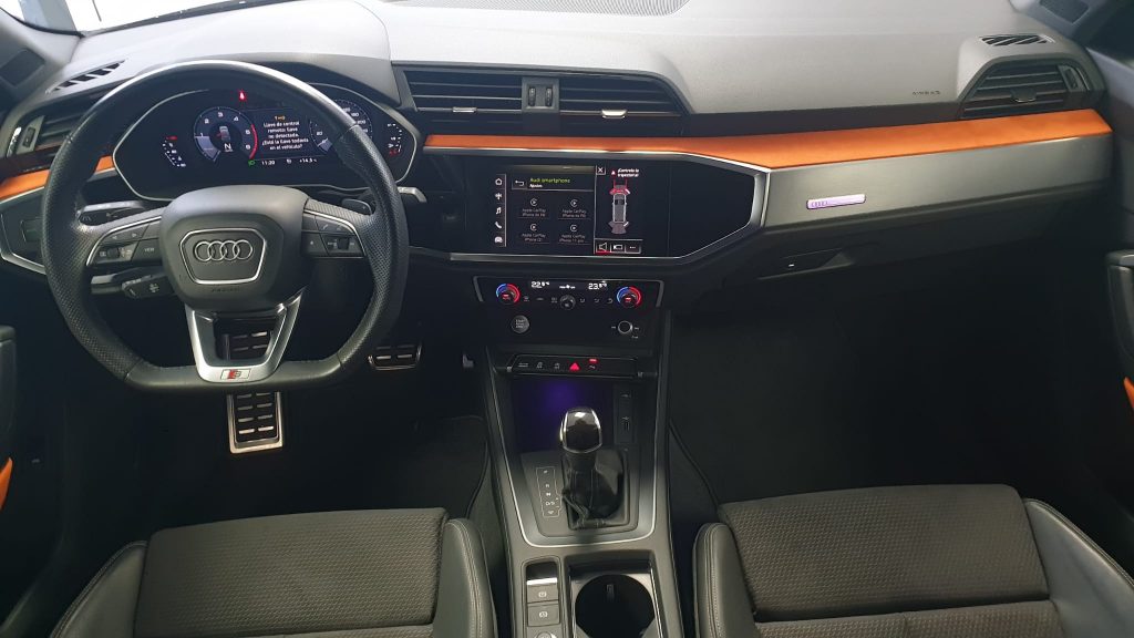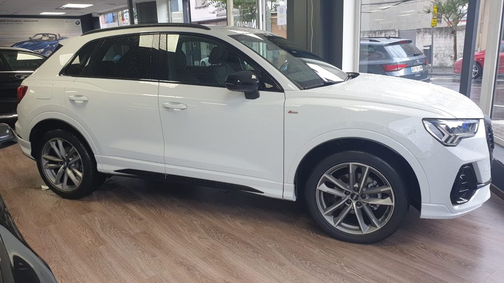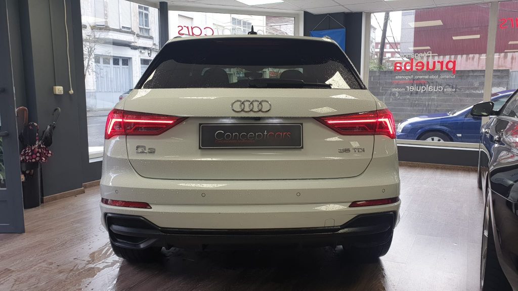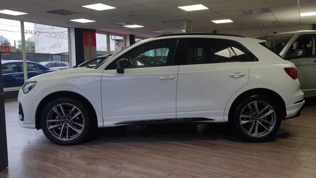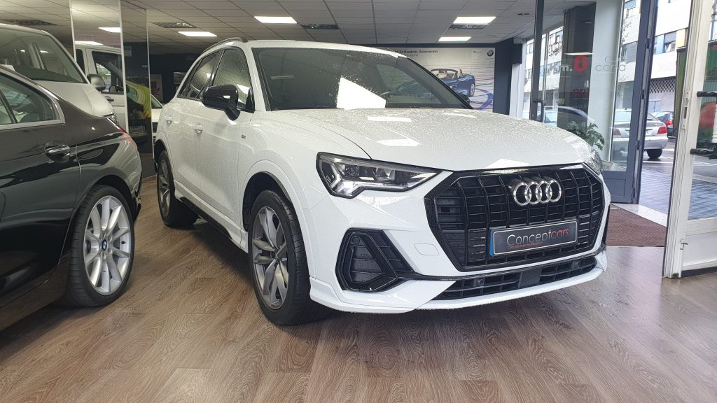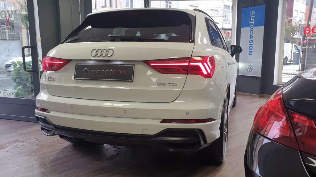 Audi Q3 Black Line 35TDI Stronic, coche nacional equipado con cuadro digital, full LED, navegación, portón eléctrico, arranque y apertura sin llave, suspensión deportiva, modos de conducción, control de velocidad adaptativo, cambio automático a luces de carretera, sensores de aparcamiento delanteros y traseros, cámara de marcha atrás, lane assist, Apple Carplay y Android Auto, front assist, climatizador trizona, espejos regulables y plegables eléctricos, llanta 19″, modos de conducción, Bluetooth+2USB. 38.990€ financiando un min. de 15.000€. 41.990€ al contado. Vehículo con certificación de km e historial de revisiones en concesionario oficial, revisión preentrega. Conceptcars concesionario en Chantada y Monforte de Lemos. Visita nuestra web WWW.CONCEPTCARS.ES