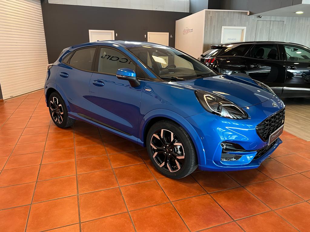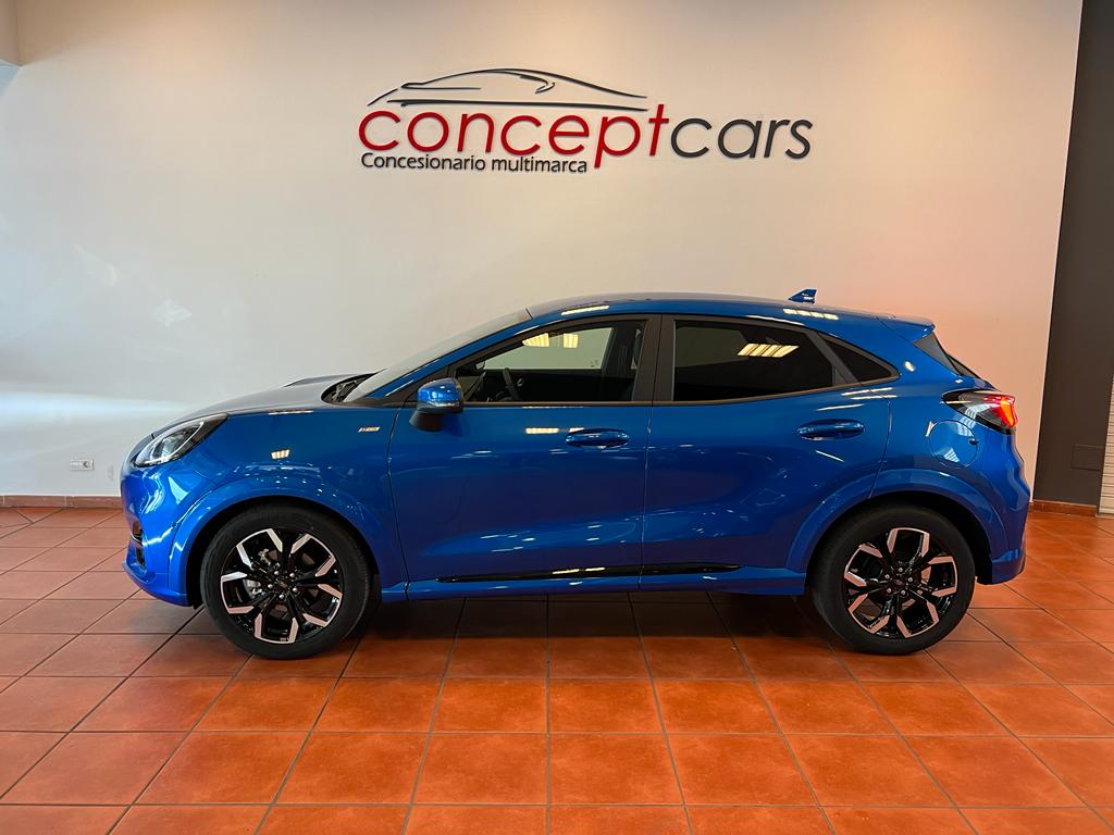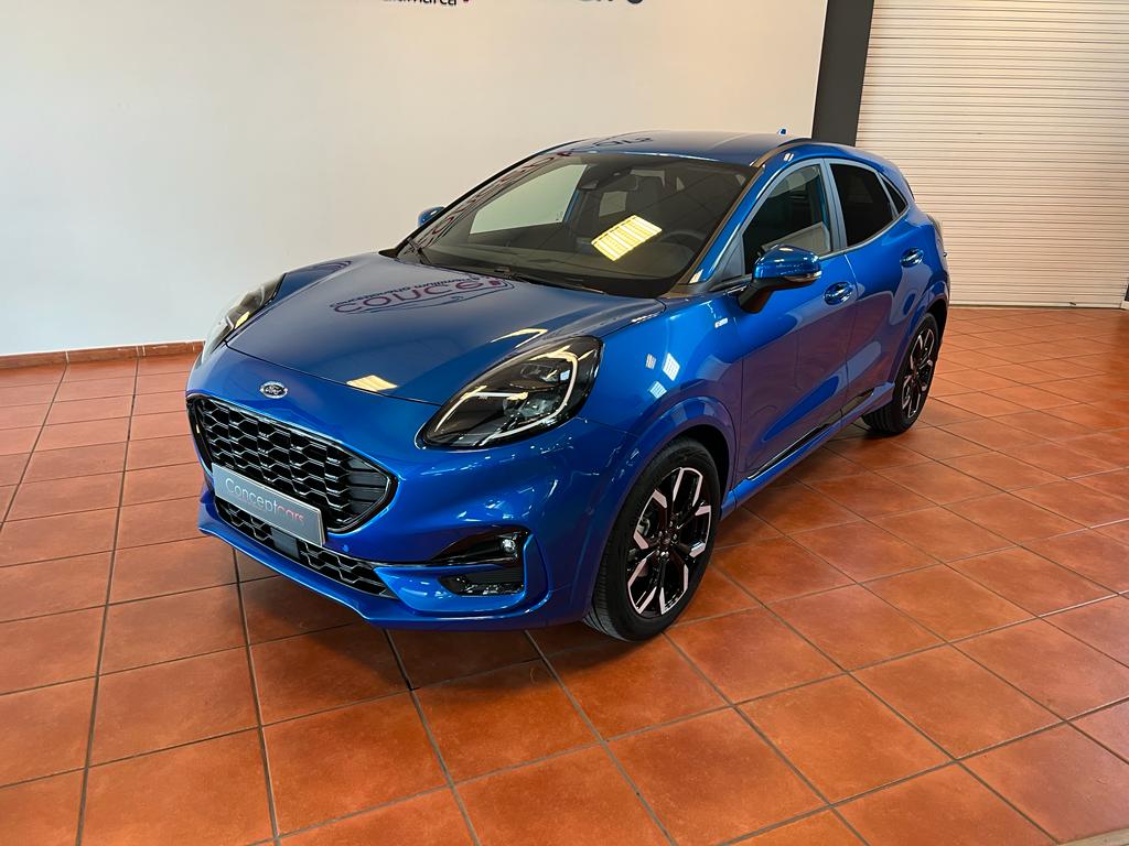 Ford Puma ST Line X Ecoboost mHev coche nacional equipado con pegatina DGT ECO, arranque y apertura sin llave, cambio por levas en el volante, cuadro digital, full LED, sensor de aparcamiento delanteros y traseros, cámara de marcha atrás, park assist, equipo de sonido Bang&Olufsen, asistente de mantenimiento de carril, cambio automático a luces de carretera, portón maletero eléctrico, navegación, lectura de señales de trafico, sensor de luces y lluvia, Android auto y Apple Carplay, bluetooth+USB, climatizador, control de velocidad, carga inalámbrica teléfono móvil, start/stop, volante multifunción, espejos regulables y plegables eléctricos, llanta 18″ . 60 meses de garantía o 70.000km. VARIAS UNIDADES DISPONIBLES. Conceptcars concesionario en Chantada y Monforte de Lemos. Visita nuestra web WWW.CONCEPTCARS.ES