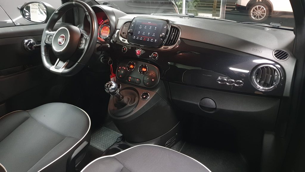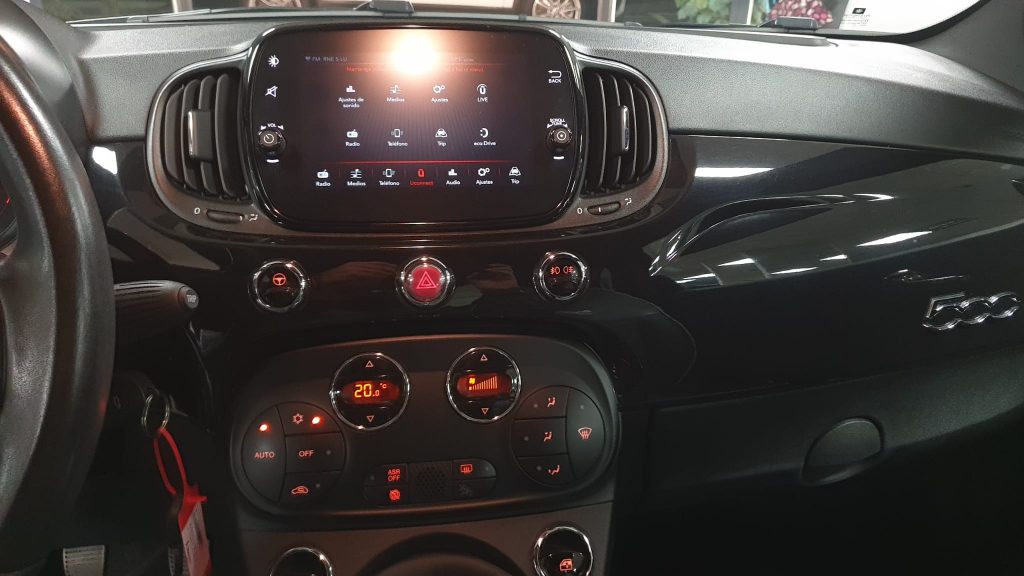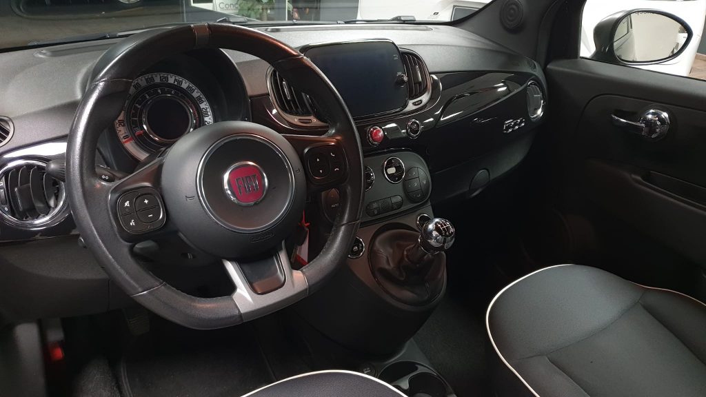 Fiat 500 S , coche nacional equipado con sensores de aparcamiento traseros, luz diurna LED, sensor de luces y lluvia, pantalla táctil, control de velocidad, climatizador, volante multifunción, Bluetooth+USB, espejos regulables eléctricos, llanta 15″. 10.995PVP financiando. 11.995PVP al contado. Vehículo certificado de km, con revisión preentrega y mantenimiento incluido. Conceptcars concesionario en Chantada y Monforte de Lemos.