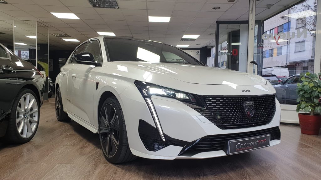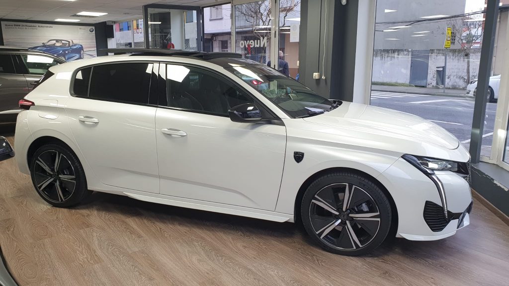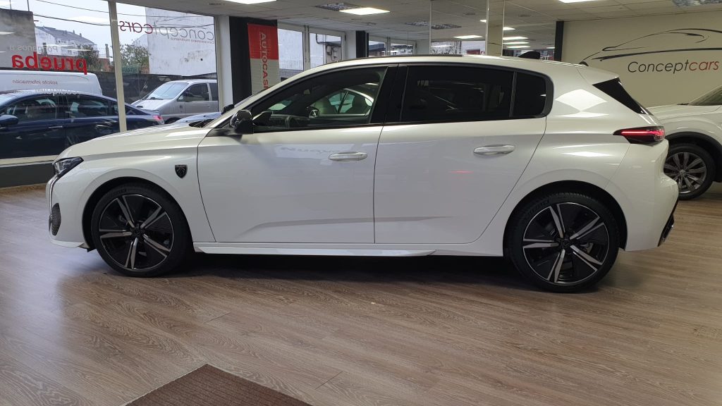 Peugeot 308 GT BlueHDI EAT8 equipado con arranque y apertura sin llave, techo solar practicable, cambio por levas en el volante, cuadro digital 3D, full LED, sensor de aparcamiento delantero y trasero, cámara marcha atrás, asistente de mantenimiento de carril, alerta de tráfico transversal trasero, navegación, lectura de señales de trafico, sensor de luces y lluvia, Android auto y Apple Carplay, tapicería cuero/alcántara, bluetooth+USB, clima bizona, Regulador adaptativo de velocidad, Start/stop, sistema de frenado automático, volante multifunción, espejos regulables y plegables eléctricos. 27.995 € financiando un min de 15.000€. 30.500 € al contado. Vehículo certificado de km, con revisión preentrega y mantenimiento incluido. Conceptcars concesionario en Chantada y Monforte de Lemos.