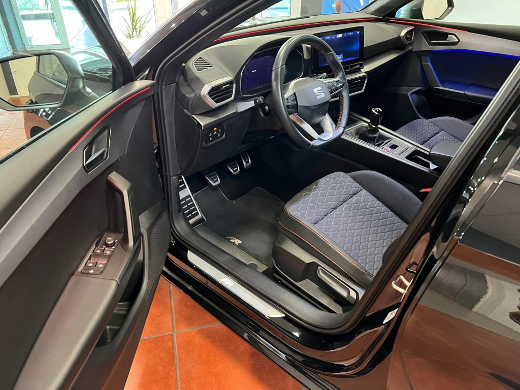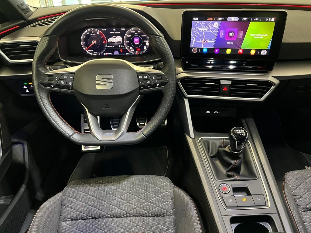 Seat León FR 1.5 TSI coche nacional equipado con cuadro digital, navegación, full led, apertura y arranque sin llave, control de velocidad adaptativo, cambio automático a luz de carretera, asistente de cambio de carril, front assist, sensores de aparcamiento delanteros y traseros, cámara de marcha atrás, Park assist, full link, clima trizona, bluetooth+2USB, carga inalámbrica del teléfono móvil, paquete luz ambiental, volante multifunción, espejos regulables y plegables eléctricos, sensor de luces y lluvia. 24.999€ financiando un min de 15.000€. 27.990€ al contado. Vehículo certificado de km, con revisión preentrega y mantenimiento incluido. Conceptcars concesionario en Chantada y Monforte de Lemos.