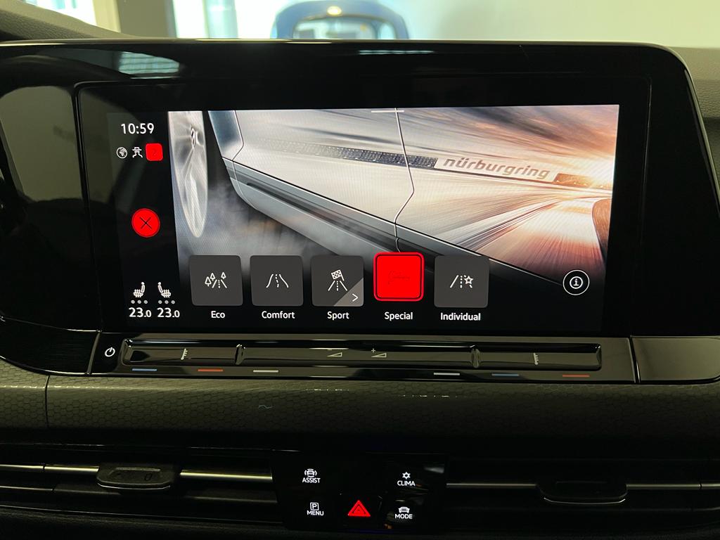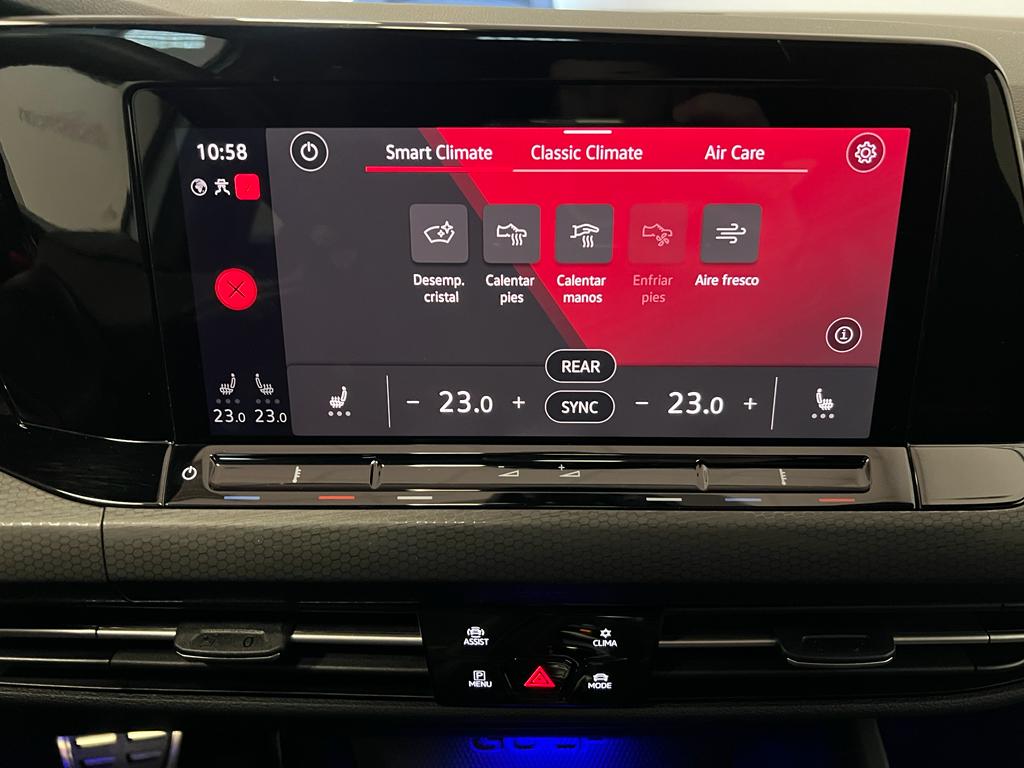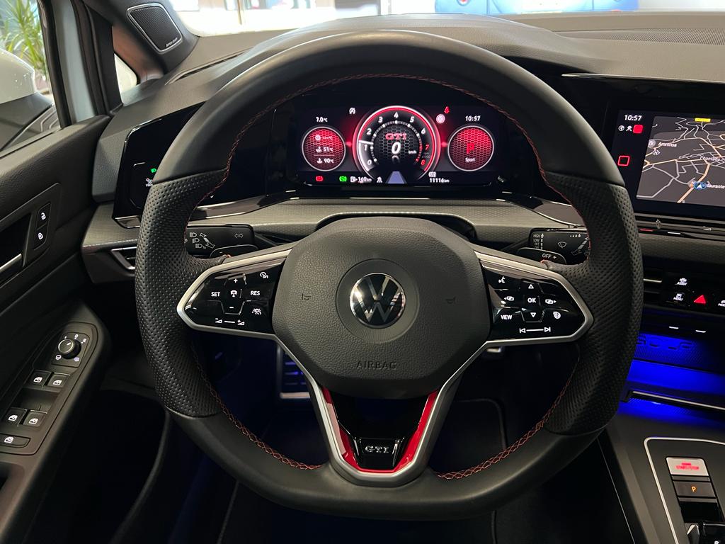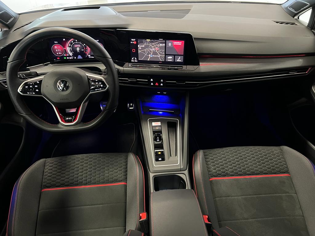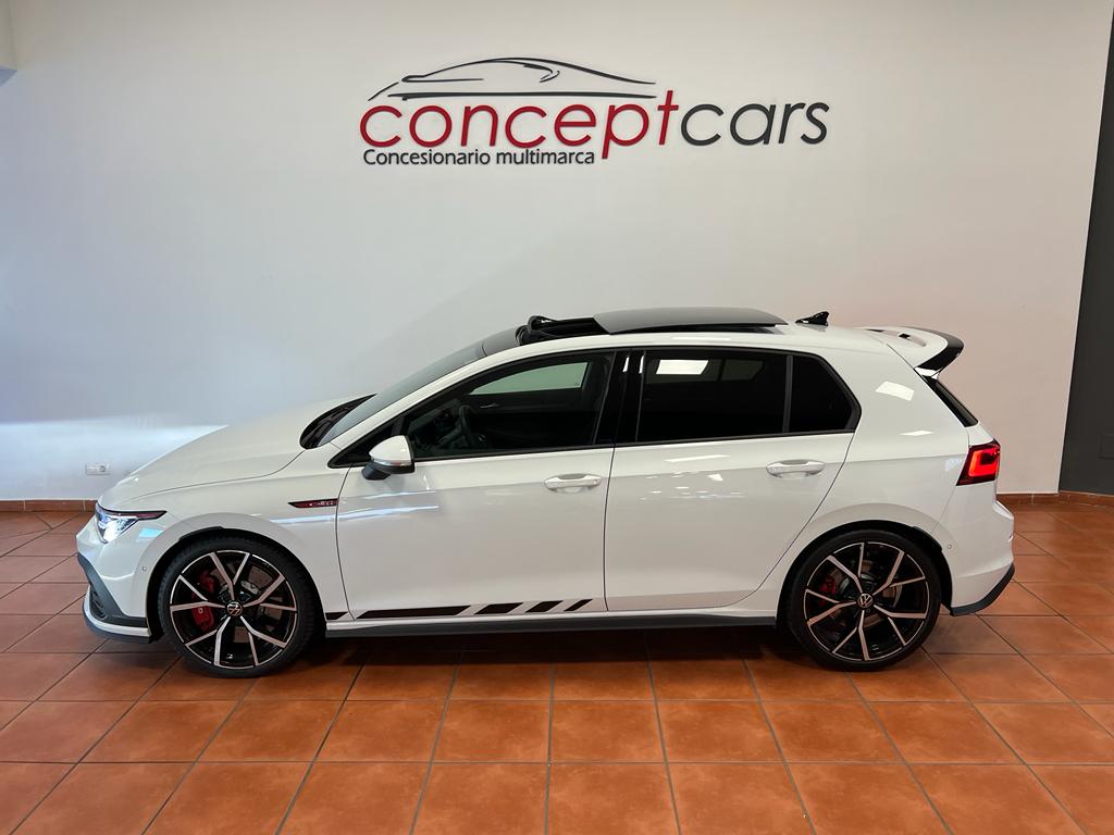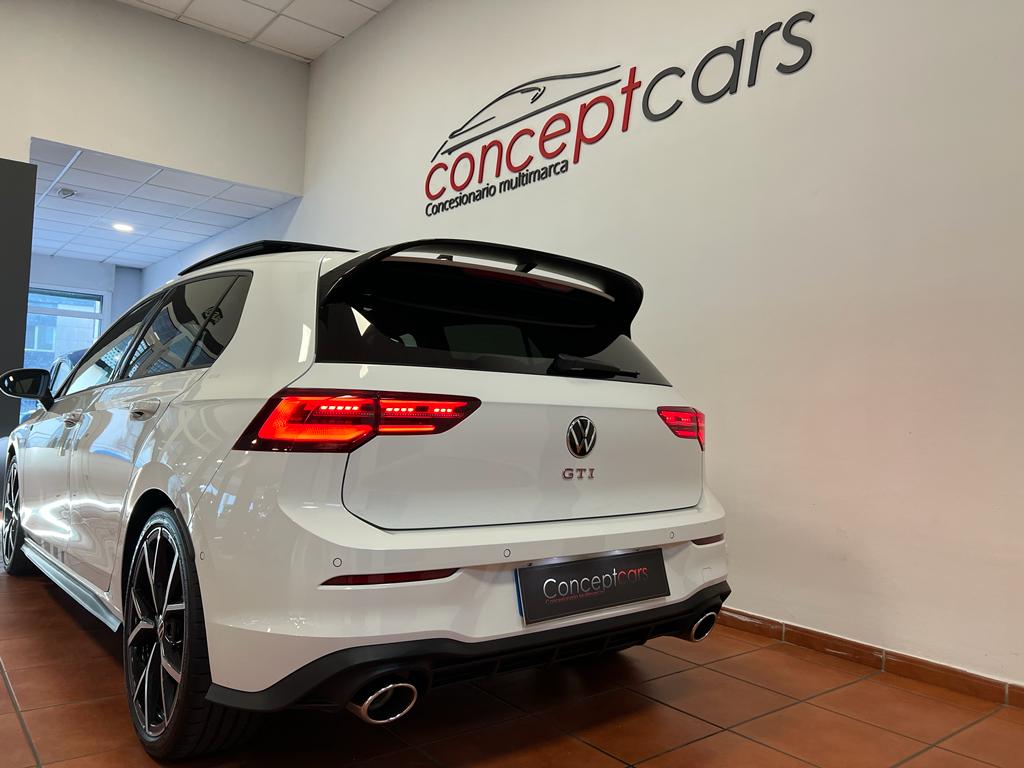 Volkswagen Golf GTI Clubsport DSG 300cv, coche nacional equipado con cuadro digital, head up display, navegación, full LED, sistema de sonido Harman/kardon, volante y asientos delanteros calefactables, apertura y arranque sin llave, parrilla delantera iluminada, modos de conducción incluido Nürburgring, puesta a punto del eje delantero (-1,20º de caída negativa, para aumentar la estabilidad en paso por curva), subchahsis delantero en aluminio(reducción de 4kg), suspensión adaptativa electrónicamente, control de velocidad adaptativo, cambio automático a luz de carretera, asistente de cambio de carril, front assist, sensores de aparcamiento delanteros y traseros, cámara de marcha atrás, Park assist, Full link, paquete interior y exterior R-Line, clima trizona, bluetooth+2USB, carga inalámbrica del teléfono móvil, paquete luz ambiental interior y exterior, sistema de airbags de cabeza delanteros y traseros, espejos regulables y plegables eléctricos, sensor de luces y lluvia, asistente de ángulo muerto, Llanta 19″. 44.999€ financiando un min de 15.000€. 47.990€ al contado. Vehículo certificado de km, con revisión preentrega y mantenimiento incluido. Conceptcars concesionario en Chantada y Monforte de Lemos.
