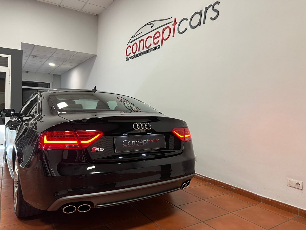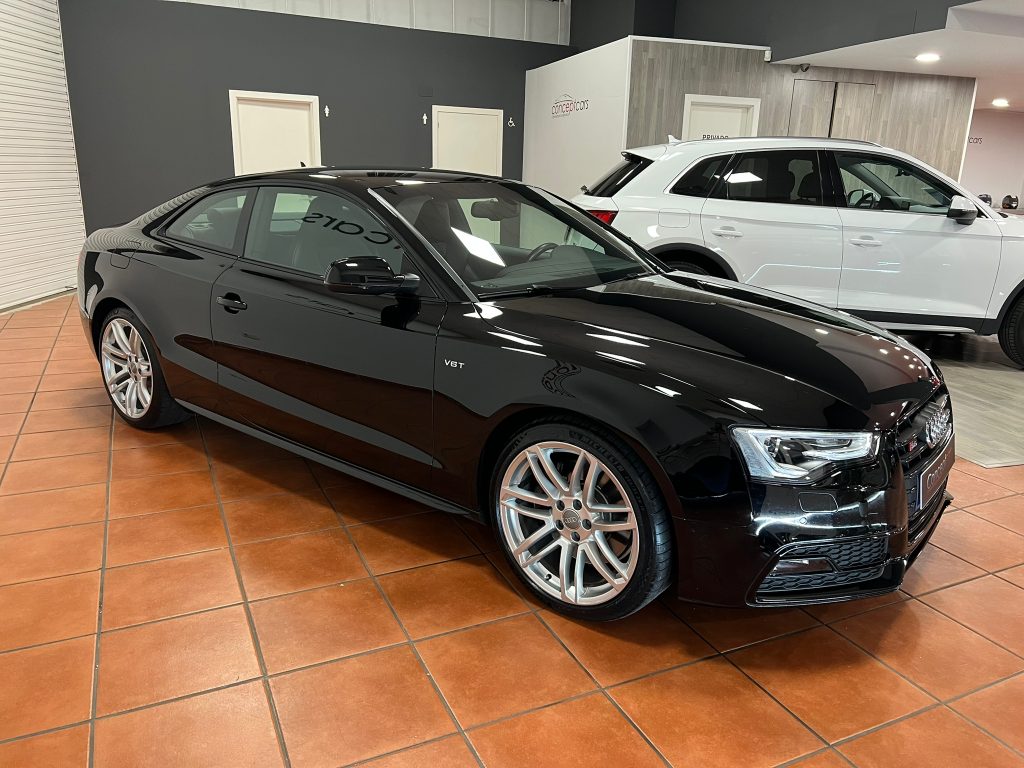 Audi S5 Quattro S-tronic 3.0 TFSI 333cv, coche nacional equipado con Bixenon, luz diurna LED, quattro, navegador, equipo de sonido Bang&Olufsen, asientos eléctricos, levas en el volante, cortinilla trasera eléctrica, cambio automático a luz de carretera, sensor de ángulo muerto, sensores de aparcamiento delanteros y traseros, modos de conducción, Start/Stop, Bluetooth+USB, sensor de luces y lluvia, climatizador bizona, control por voz, Audi Connect, control de velocidad, llanta 19″, espejos regulables y plegables eléctricos. 32.990€ financiando un min de 15.000€. 35.990€ al contado, Vehículo certificado de km, con revisión preentrega. Conceptcars concesionario en Chantada y Monforte de Lemos.