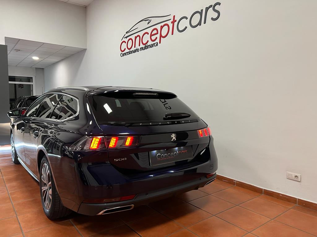 Peugeot 508 SW Allure BlueHDI EAT8 coche nacional equipado con apertura y arranque sin llave, navegación, cuadro digital, climatizador bizona, sensores de aparcamiento delanteros y traseros, cámara de marcha atrás 180º, Start/Stop, vigilancia de ángulos muertos, modos de conducción, active safety brake, reconocimiento de señales, sensor de luces y lluvia, cambio automático a luces de carretera, espejos regulables y plegables eléctricos, asistente de cambio de carril, asistente al mantenimiento del carril, control de velocidad, volante multifunción, Android auto y Apple Carplay, Bluetooth+USB. 23.995€ financiando un mínimo de 15.000€. 25.995€ al contado. Vehículo certificado de Km, con revisión preentrega. Conceptcars concesionario en Chantada y Monforte de Lemos.