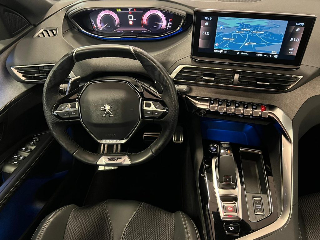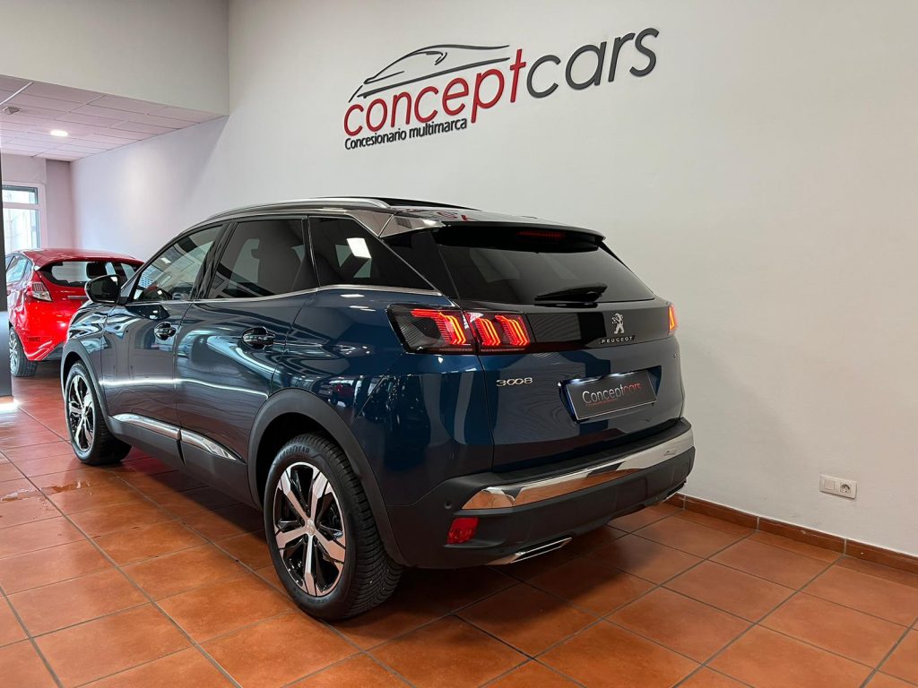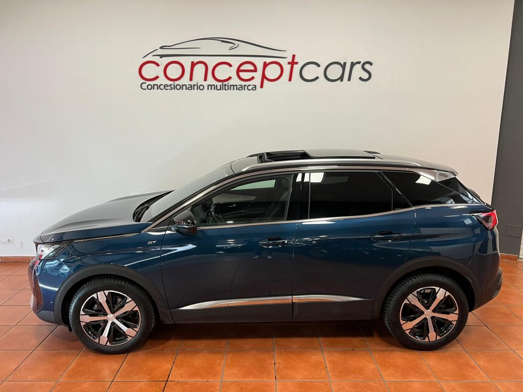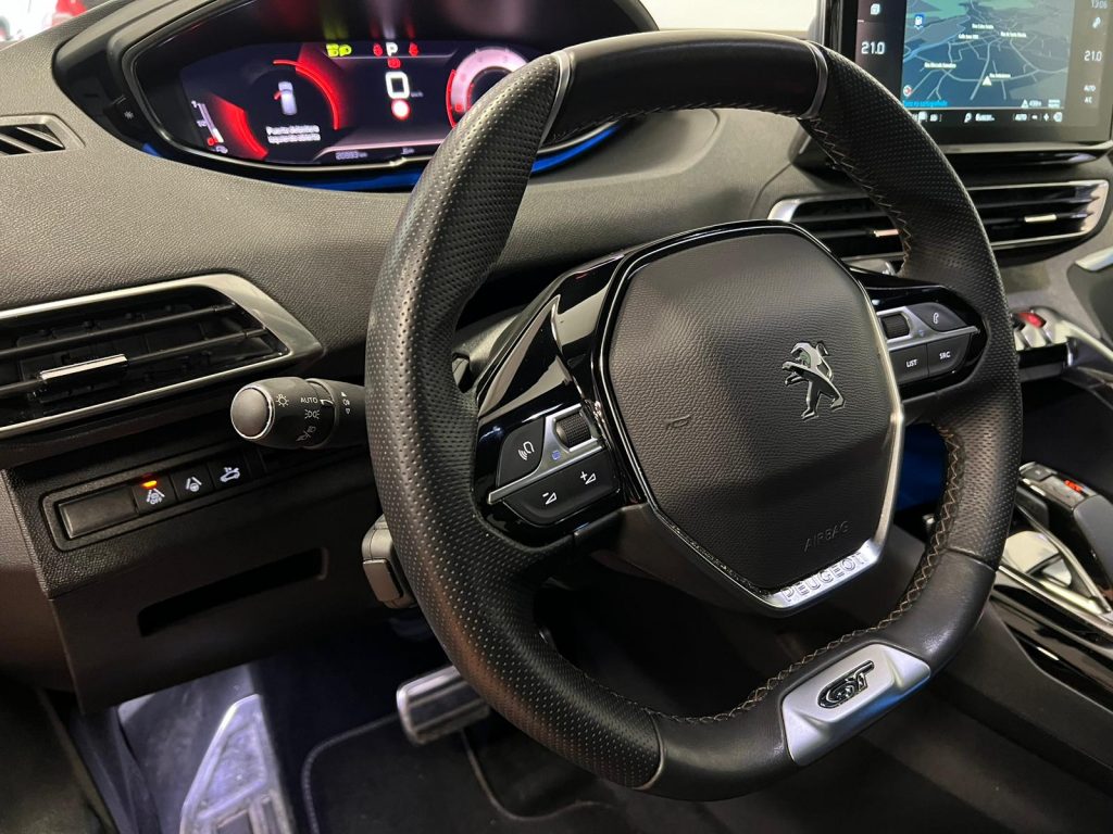 Peugeot 3008 BlueHDI EAT8 GT coche nacional equipado con apertura y arranque sin llave, cuadro digital 3D, techo solar practicable, portón maletero eléctrico, navegación, Full LED, sensor de aparcamiento delantero y trasero, cámara marcha atrás, cambio automático a luz de carretera, asistente de mantenimiento de carril, lectura de señales de trafico, vigilancia de ángulos muertos, sensor de luces y lluvia, Modos de conducción, ayuda al frenado en descenso, Android auto y Apple Carplay, Bluetooth+USB, tapicería cuero/tela, bluetooth+USB, luz ambiental, clima bizona, Regulador adaptativo de velocidad, start/stop, volante multifunción, espejos regulables y plegables eléctricos, Llanta 18″. 29.500€ financiando un min de 15.000€. 31.500€ al contado. Vehículo certificado de km, con revisión preentrega y mantenimiento incluido. Conceptcars concesionario en Chantada y Monforte de Lemos.