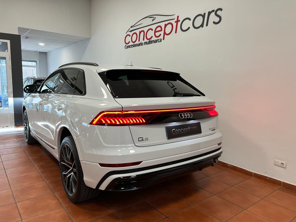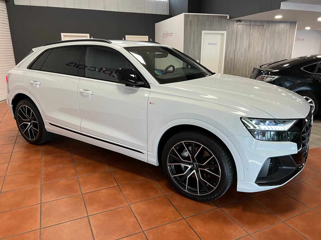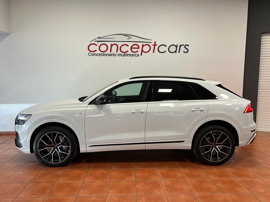 Audi Q8 50TDI Quattro Black Line Tiptronic coche nacional equipado con pegatina DGT ECO, cuadro digital, Matrix LED, navegación, asientos delanteros eléctricos con memoria, portón del maletero eléctrico, arranque y apertura sin llave, paquete iluminación ambiental, cambio automático a luz de carretera, control de velocidad adaptativo, park assist, sensores de aparcamiento delanteros y traseros, Audi Drive Select, Apple Carplay y Android Auto, front assist, climatizador bizona, espejos regulables y plegables eléctricos, llanta 22″, Bluetooth+USB. 59.990€ financiando. 63.990€ al contado. Conceptcars concesionario en Chantada y Monforte de Lemos.