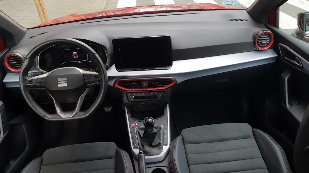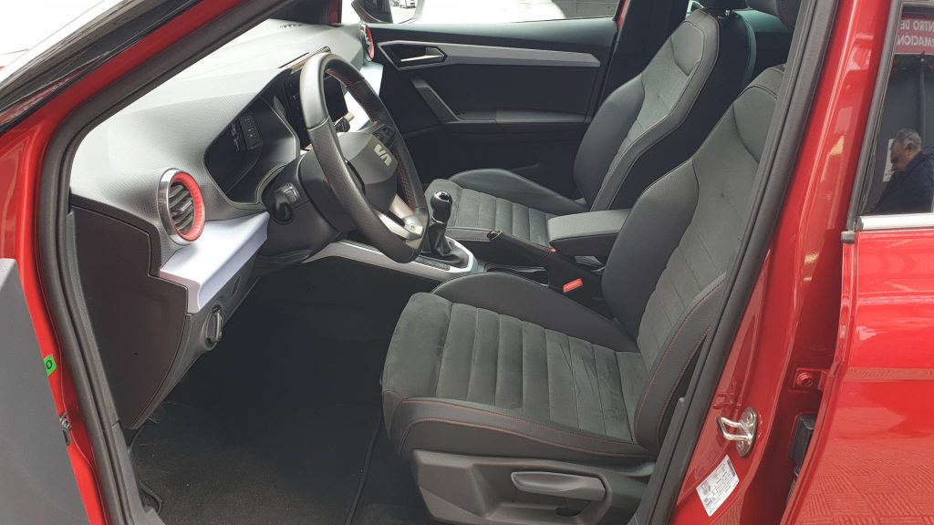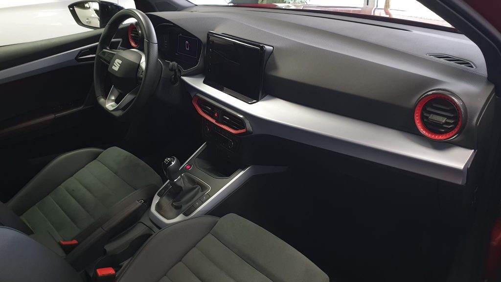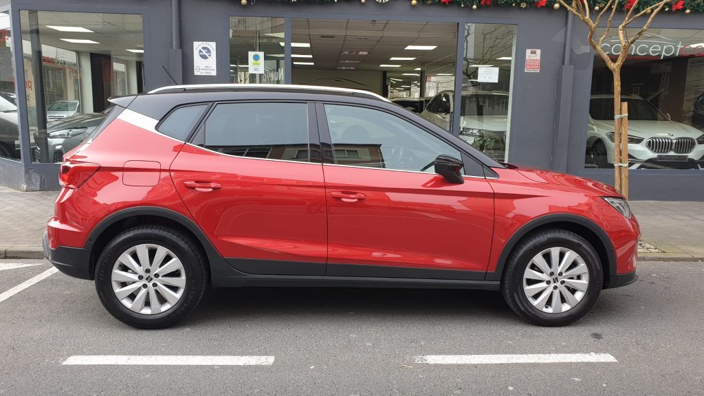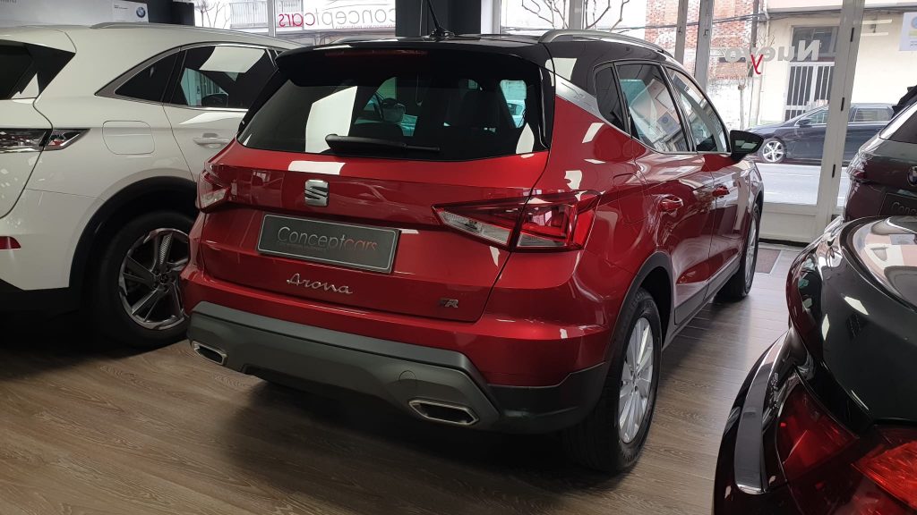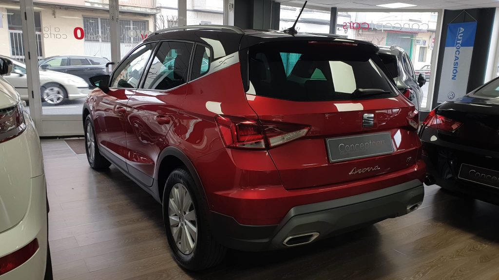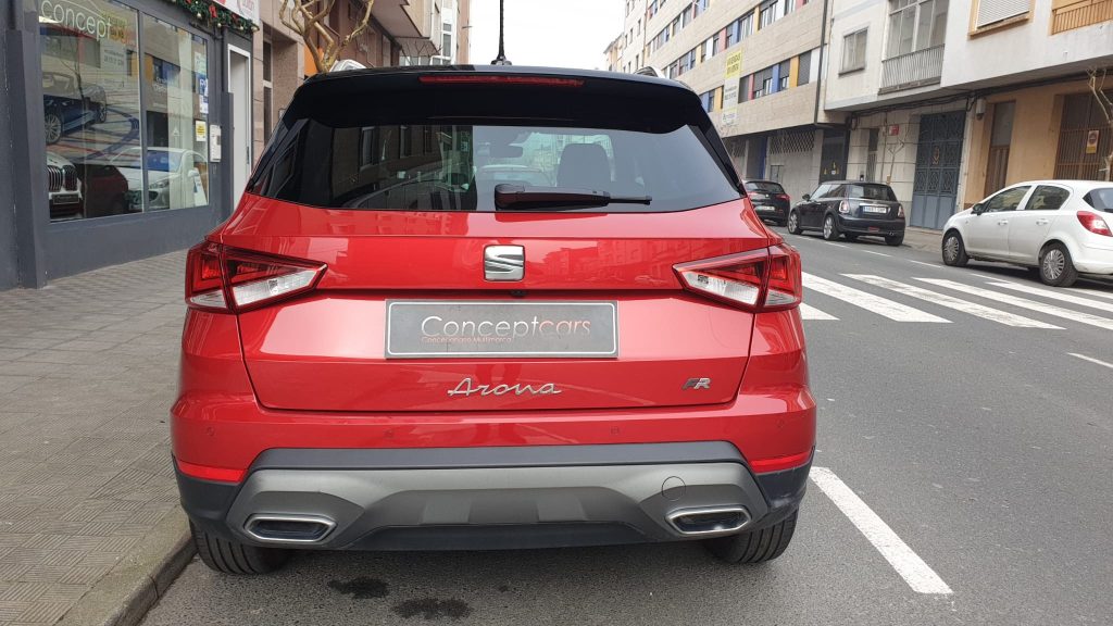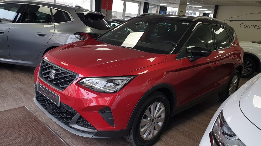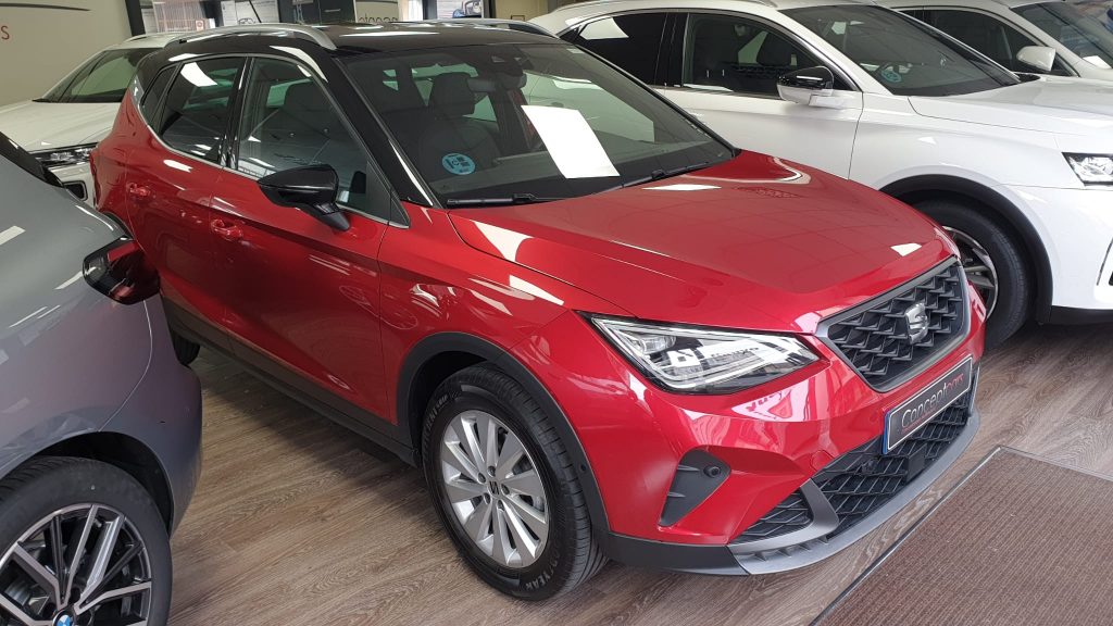 Seat Arona FR coche nacional equipado con cuadro digital, Full LED, navegación, sensores de aparcamiento delanteros y traseros, cámara de marcha atrás, park assist, apertura y arranque sin llave, climatizador bizona, modos de conducción, carga inalámbrica teléfono móvil, asistente de mantenimiento de carril, front assit, sistema start/stop, app connect, control de velocidad adaptativo, Bluetooth+ 2USB, volante multifunción, espejos regulables y plegables eléctricos, sensor de luces y lluvia, llanta 16″, garantía extendida a 3 años o 100.000km desde la matriculación. 21.990 financiando un min. 15.000€. 24.990€ al contado. Conceptcars concesionario en Chantada y Monforte de Lemos.