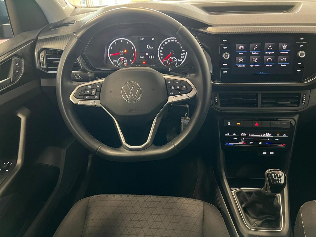 Volkswagen T Cross Advance, coche nacional equipado con sensores de aparcamiento delanteros y tarseros, front assist, asistente de mantenimiento de carril, climatizador bizona, luz diurna, Android Auto y Apple Carplay, Mirror Link, control de crucero adaptativo, Bluetooth+ USB, volante multifunción, espejos regulables y plegables eléctricos, sensor de luces y lluvia, llanta 16″. 21.990€ financiando un min de 15.000€. 24.990€ al contado. Vehículo certificado de km, con revisión preentrega y mantenimiento incluido. Conceptcars concesionario en Chantada y Monforte de Lemos.