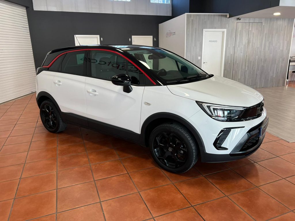 Opel Crossland GS Line coche nacional equipado con Full LED, navegación,climatizador bizona, sensor de aparcamiento traseros, sensor de luces y lluvia, espejos regulables y plegables eléctricos, asistente de mantenimiento de carril, reconocimiento de señales, control de velocidad, volante multifunción, front assist, alerta atención del conductor, Android auto y Apple Car play, Bluetooth+USB, llanta 17″. 18.995€ financiando un mínimo de 15.000€. 19.995€ al contado. Vehículo certificado de km, con revisión preentrega y mantenimiento incluido. Conceptcars concesionario en Chantada y Monforte de Lemos.