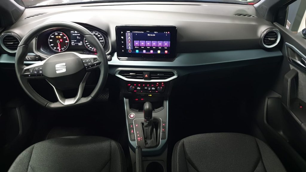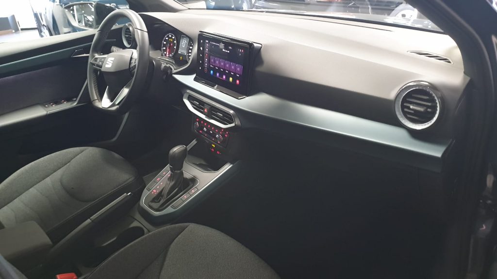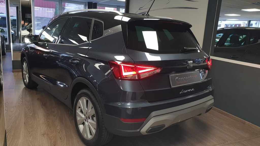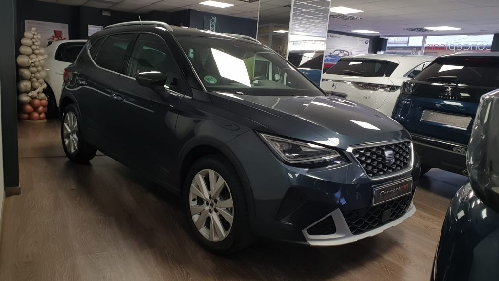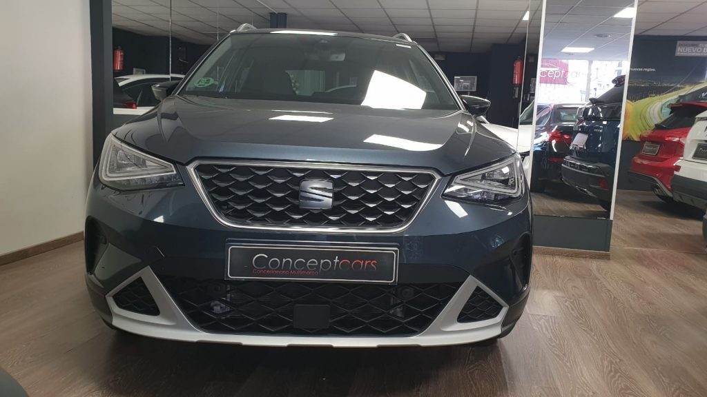 Seat Arona Xperience DSG, coche nacional equipado con Full LED, navegación, sensores de aparcamiento delanteros y traseros, cámara de marcha atrás, park assist, apertura y arranque sin llave, climatizador bizona, iluminación aireadores, carga inalámbrica teléfono móvil, asistente de mantenimiento de carril, front assit, sistema start/stop, app connect, control de velocidad adaptativo, Bluetooth+ 2USB, volante multifunción, espejos regulables y plegables eléctricos, sensor de luces y lluvia, llanta 17″. 22.990€ financiando un min. 15.000€. 25.990€ al contado. Conceptcars concesionario en Chantada y Monforte de Lemos.