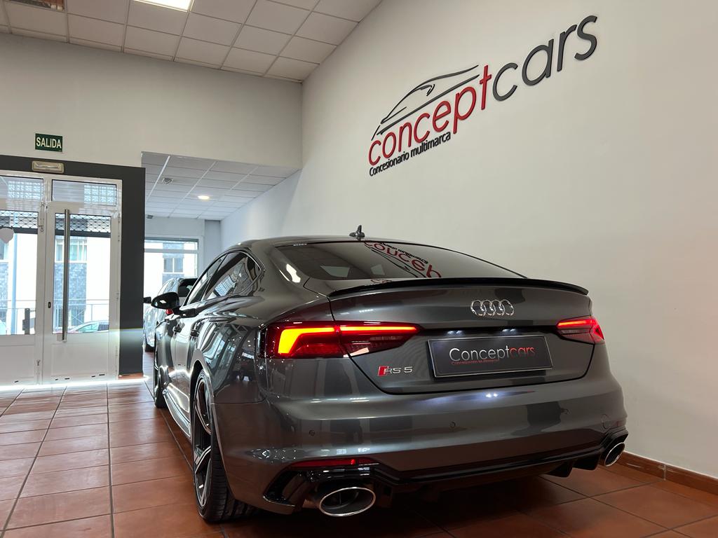 Audi RS5 Sportback TFSI Quattro Tiptronic, coche nacional equipado con cuadro digital, Matrix LED, navegación, Head Up display, asientos delanteros eléctricos y con masaje, portón del maletero eléctrico, arranque y apertura sin llave, paquete iluminación ambiental, control de velocidad adaptativo, asistente mantenimiento de carril, sensores de aparcamiento delanteros y traseros, cámara de marcha atrás, Audi Drive Select, Apple Carplay y Android Auto, carga inalámbrica del teléfono móvil, front assist, climatizador trizona, espejos regulables y plegables eléctricos, sensor de ángulos muertos, llanta 20″, tapicería de cuero, volante y pomo en alcántara, Bluetooth+USB. 69.990€ financiando. 72.990€ al contado. Vehículo certificado de km con revisión preentrega y mantenimiento incluido. Conceptcars concesionario en Chantada y Monforte de Lemos.